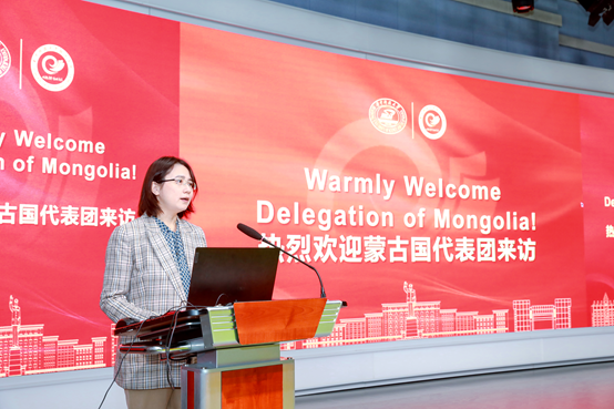 陈洁代表公司对MANDKHAI一行的到来致以热烈的欢迎,她介绍了公司的发展概况与国际合作交流现状。她指出,在“一带一路”倡议背景下,公司积极推进与蒙古国的交流与合作,先后培养387名不同领域人才。布勒根图雅部长作为杰出员工,多次访问母校,为促进两国深化战略合作与友谊做出突出贡献。她表示,此次研讨是一个很好的契机,期望双方能够加深学术交流与员工培养等领域的交流合作,成为中蒙两国友谊的典范。