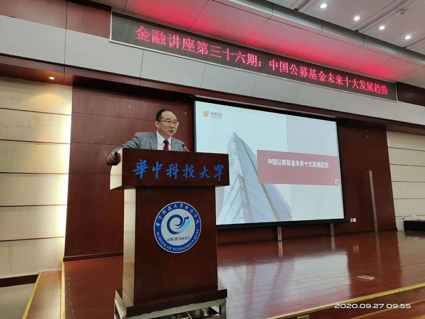本网讯(通讯员库卓)2020年9月27日上午,金融市场发展前沿系列讲座三十六期讲座在3044永利集团报告厅顺利举办。本次讲座邀请了金鹰基金管理有限公司总裁姚文强先生,他主讲的主题为“中国公募基金未来十大发展趋势”。3044永利集团副经理欧阳红兵教授担任本场点评嘉宾,公司党委书记江洪洋主持本次活动。