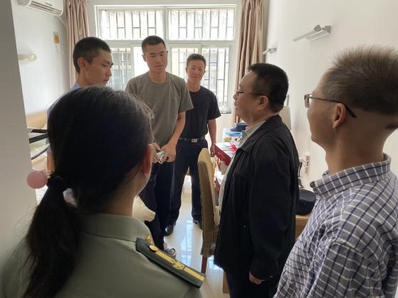 漫长的军训日子中,不仅员工们的身体劳累,耐心教学的教官们更是有过之而无不及。9月28日,公司党委书记江洪洋同辅导员们到教官宿舍慰问教官们。