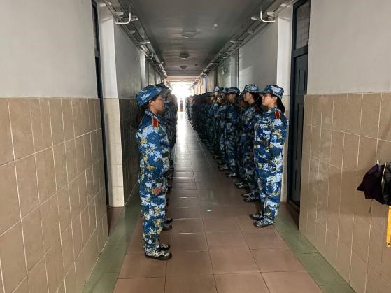 尽管前几日天空不作美,连绵的小雨也未能影响新生对军训的严谨态度。寝室狭长的走廊下留下了新生们挺拔的身影,阴雨的天气中留下了新生们无尽的汗水。不论天气如何,不论地点在哪,新生们还是静下心来聆听教官们的指令,认真完成每一个命令 。