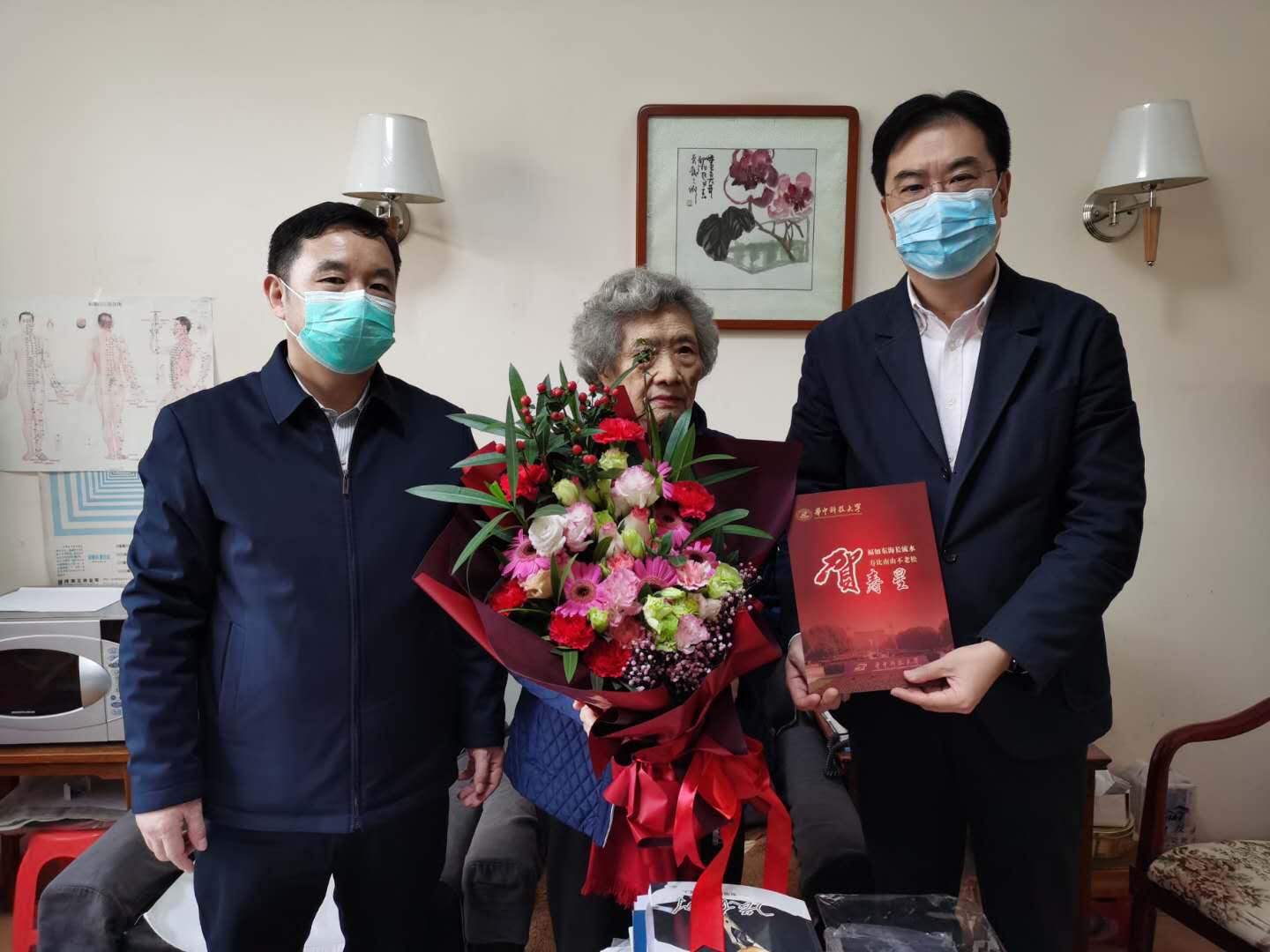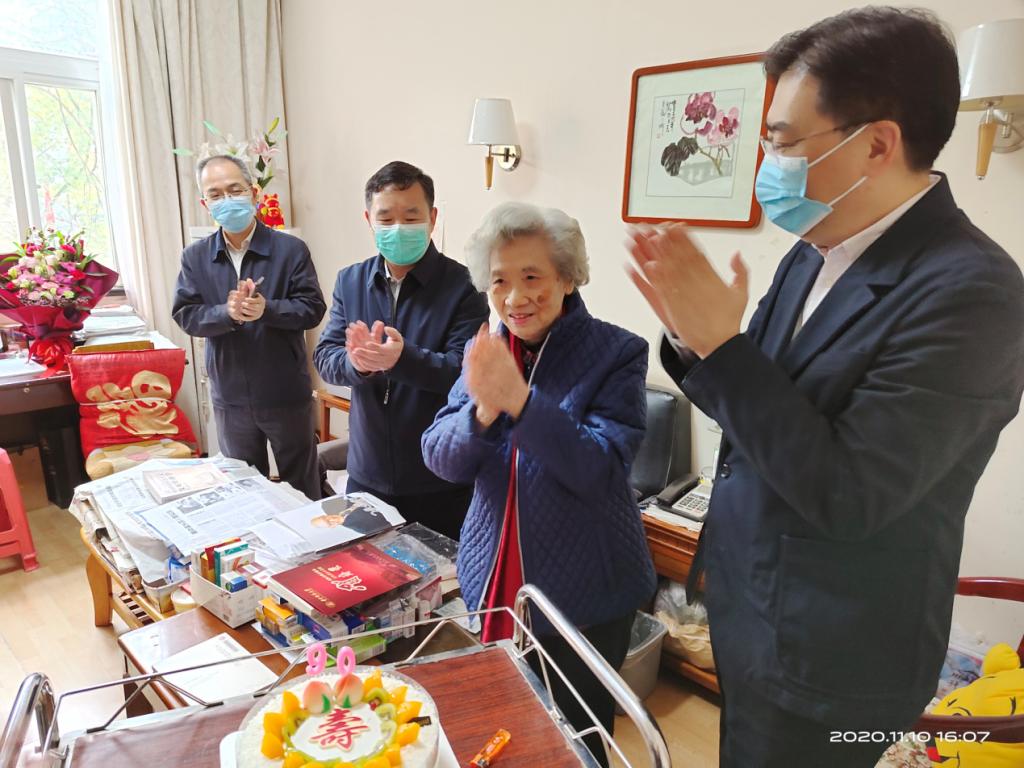 本网讯(通讯员王彬)2020年11月10日下午,公司党委书记邵新宇、党委副书记马建辉在统战部部长杨筱和3044永利集团经理张建华等的陪同下,到公司退休老教师谭慧家中慰问,祝贺她90岁生日快乐,并向她献上鲜花和贺卡。