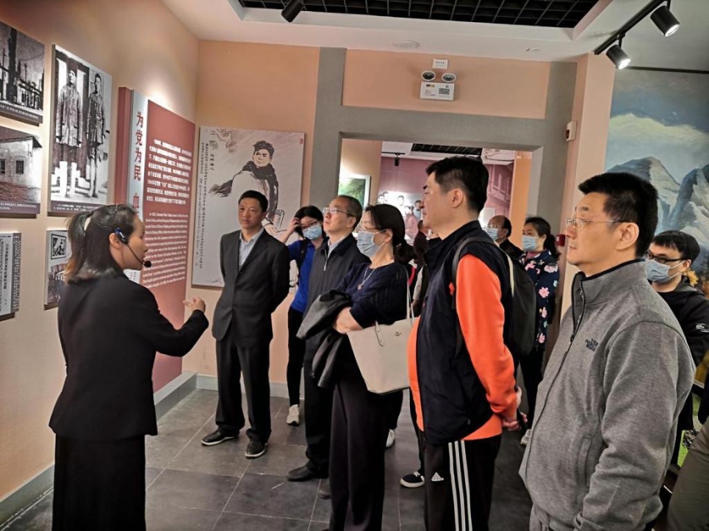 在陈潭秋故居公园的宣誓广场上,有一组反映中国共产党创始人之一的陈潭秋烈士一生重要足迹浮雕,浮雕前,全体教职工党员整齐列队伫立,重温了入党誓词。随后在讲解员的带领下,大家参观了陈潭秋生平展览,八间展室内260余张照片和50余件文物史料就是党史教育的特殊课堂和鲜活教材,一幅幅画面生动的讲述了陈潭秋参与中国共产党创建、参加地区革命活动的英雄伟绩,再现了革命先烈浴血奋斗的艰辛历程。