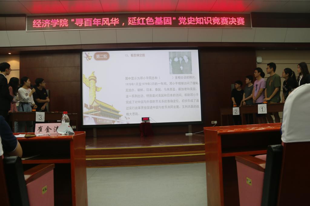经过初赛的角逐,共有8支队伍进入本次决赛,第一轮比赛中,各党支部参赛选手都表现优异,回答既快速又准确,赢得在场观众的阵阵掌声。中间的计分阶段,主持人播放了一段采访视频,来自各个年级的同学们讲述了在党史学习过程中的体悟。第一轮比赛为淘汰赛,初赛中的第一名vs第八名,第二名vs第七名,第三名vs第六名,第四名vs第五名,两两pk,共四轮。初赛中排名为1至4名的队伍派代表现场抽签,决定出场顺序和对应的四个题库。每轮16题,每题的作答时间为30s。得到主持人“请回答”的指令后,两队的队长举出答案卡片,并且举出后不得更改答案。本轮采取积分制,答对积一分,答错不扣分。每组得分高的队伍共四支队伍进入下一轮。经过激烈的角逐,硕士20级第五党支部,硕士19级第三党支部和本科18级第三党支部成功出线;同时,另外一组队伍——本科18级第一党支部和硕士20级第三党支部——则不相上下,双双进入加时赛。加时赛题型均为单选。初赛排名靠前的队伍优先选择答题先后,每题的作答时间为15s,先答错的队伍被淘汰,直至本轮剩下四支队伍进入第二轮。最终本科18级第一党支部优势出线。
