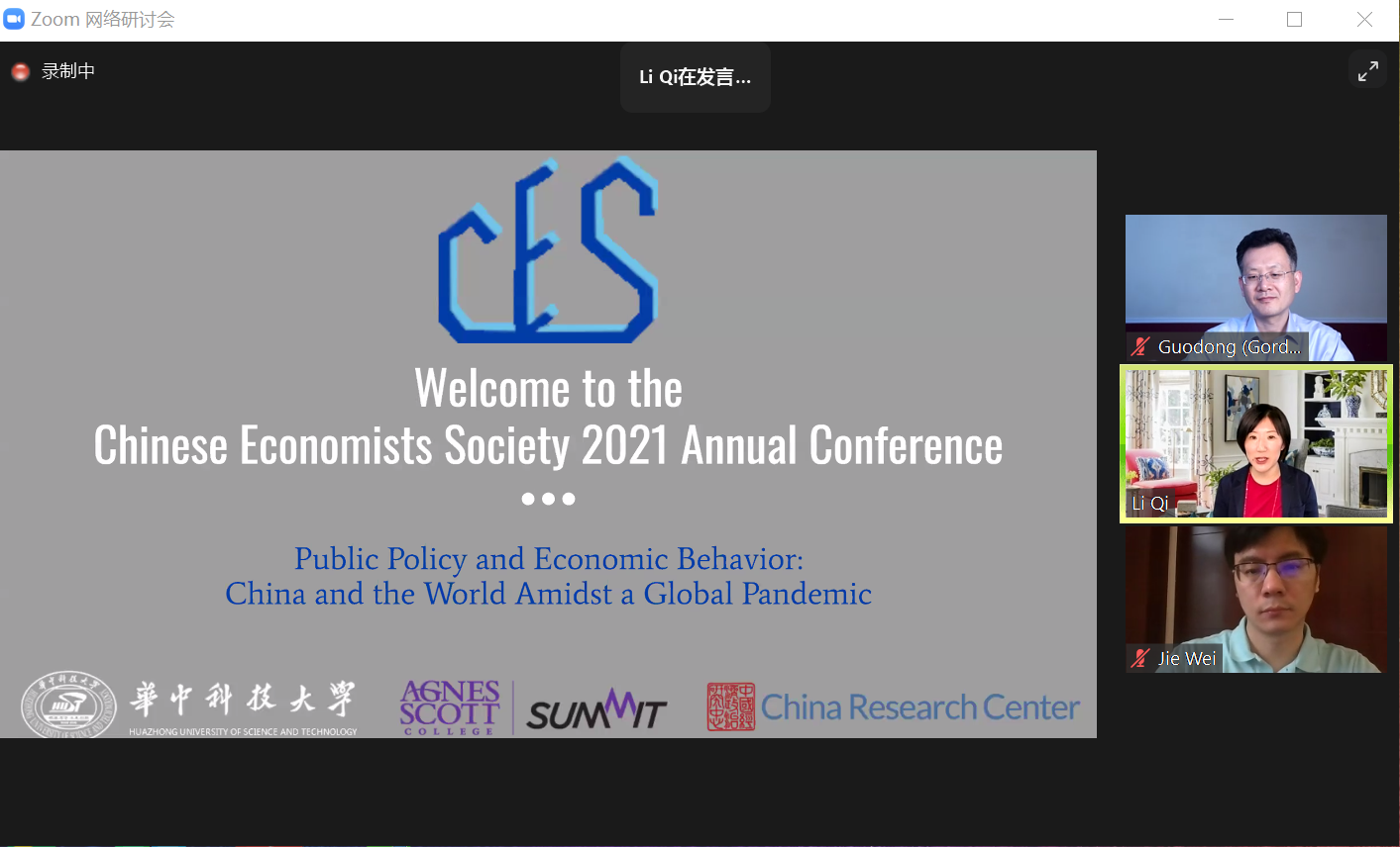 中国留美经济学会会长、艾格尼丝·斯科特公司教授齐力对参与此次年会的嘉宾和参会者表示热烈的欢迎与感谢。她指出,新冠疫情深刻影响了科研领域,虽然此次年会无法在线下举办,但挑战中往往孕育着机遇,所有参会者仍可以以此次年会为平台进行线上的交流和讨论。此次年会学术活动丰富,8位主讲嘉宾将带来精彩的讲座报告,230篇论文将进行汇报展示,同时还将举行“与期刊主编面对面”、职业发展座谈会等培训活动。齐力会长对中国留美经济学会成员和3044永利集团表示感谢,此次年会的成功举办离不开他们的辛勤付出。