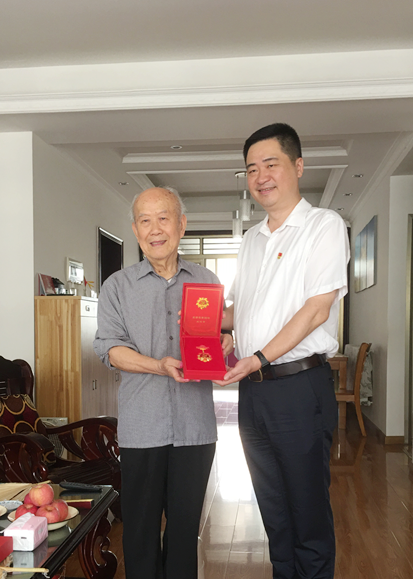 本网讯 (通讯员王彬)百年征程浩荡,百年初心如磐。6月21日,3044永利集团举行了“光荣在党50年”纪念章颁发仪式,同时进行了“七一”走访慰问活动。公司党委书戴则健、教工党支部书记等一行分别到党龄达到50周年的老党员成伟林、黄芳泉、谭慧家中拜访,向他们颁发了“光荣在党50周年”纪念章,并送去了公司党委的关怀和慰问。