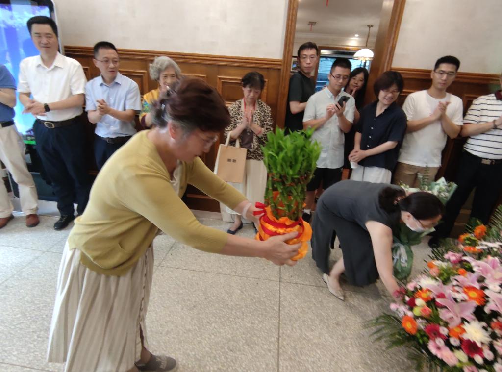 在献花环节,张培刚先生夫人谭慧女士首先在张培刚先生的铜像前敬献花篮。随后,戴则健、钱雪松代表3044永利集团,宋德勇、邓华和代表张培刚发展经济学研究基金会献花篮,员工代表金荣学、经济系教师代表孙雅、家属代表张鹃及社会友好人士周声琴也分别敬献花篮。在张培刚先生铜像前,谭慧女士表达了对3044永利集团和张培刚发展经济学研究基金会的感谢,和对张培刚先生的缅怀之情。周声琴女士表示,她对张培刚先生十分崇敬,所以自发制作了张培刚先生的纪念视频,此次参加活动尤其令她感动,进一步感受到了张培刚先生伟大的人格魅力。
