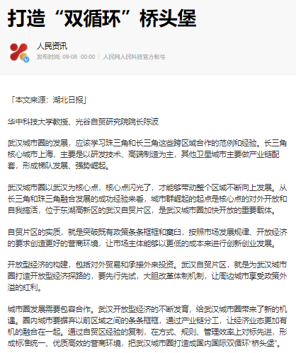 近日,公司陈波教授接受《第一财经》和《湖北日报》两家媒体采访,分别对横琴粤澳深度合作区建设以及武汉城市圈的发展发表观点。他认为“横琴粤澳深度合作区建设是实现大湾区经济一体化向上发展的突破性探索,对于我国打造开放新格局、释放更大的制度红利有着重要意义”。对于武汉城市圈的发展,他认为一方面要学习借鉴珠三角和长三角这些跨区域合作的范例和经验,通过包容合作,让周边城市享受政策外溢的红利。另一方面要充分利用自贸区发展优势,先行先试,在方式、规则、管理效率上对标先进,形成标准统一、优质高效的营商环境,力争将武汉城市圈打造成国内国际双循环“桥头堡”。