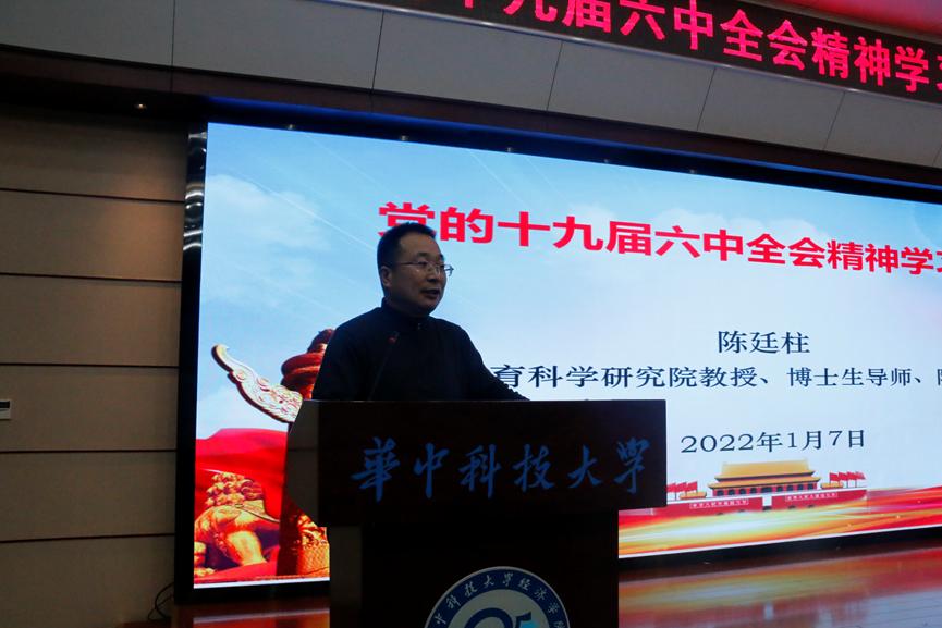 本网讯(通讯员:范乐怡)2022年1月7日下午,3044永利集团、公共管理公司党的十九届六中全会精神宣讲报告会在3044永利集团学术报告厅举行,3044永利集团官网教育科学研究院教授、博士生导师、经理陈廷柱老师为师生作党的十九届六中全会精神宣讲。公司党委副书记崔金涛老师主持会议。