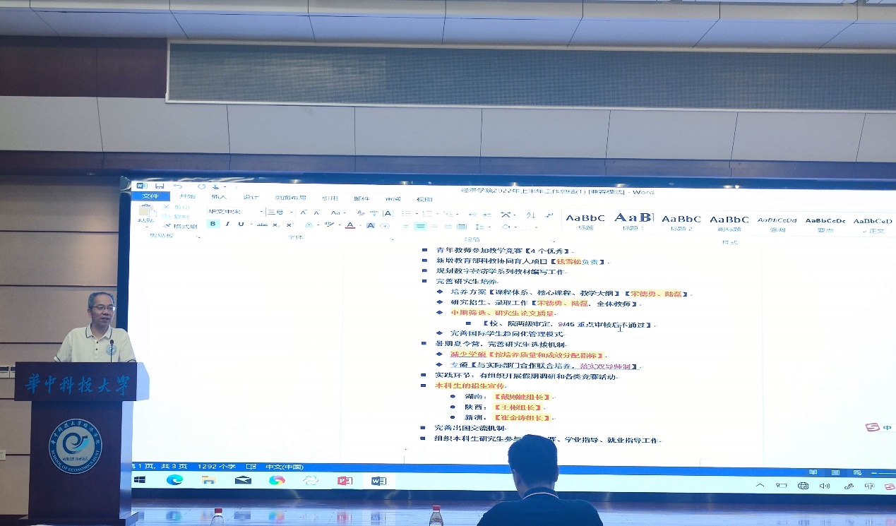 副经理欧阳红兵总结了2022上半年本科教学、专业建设、员工培养等方面的工作和取得的成效。