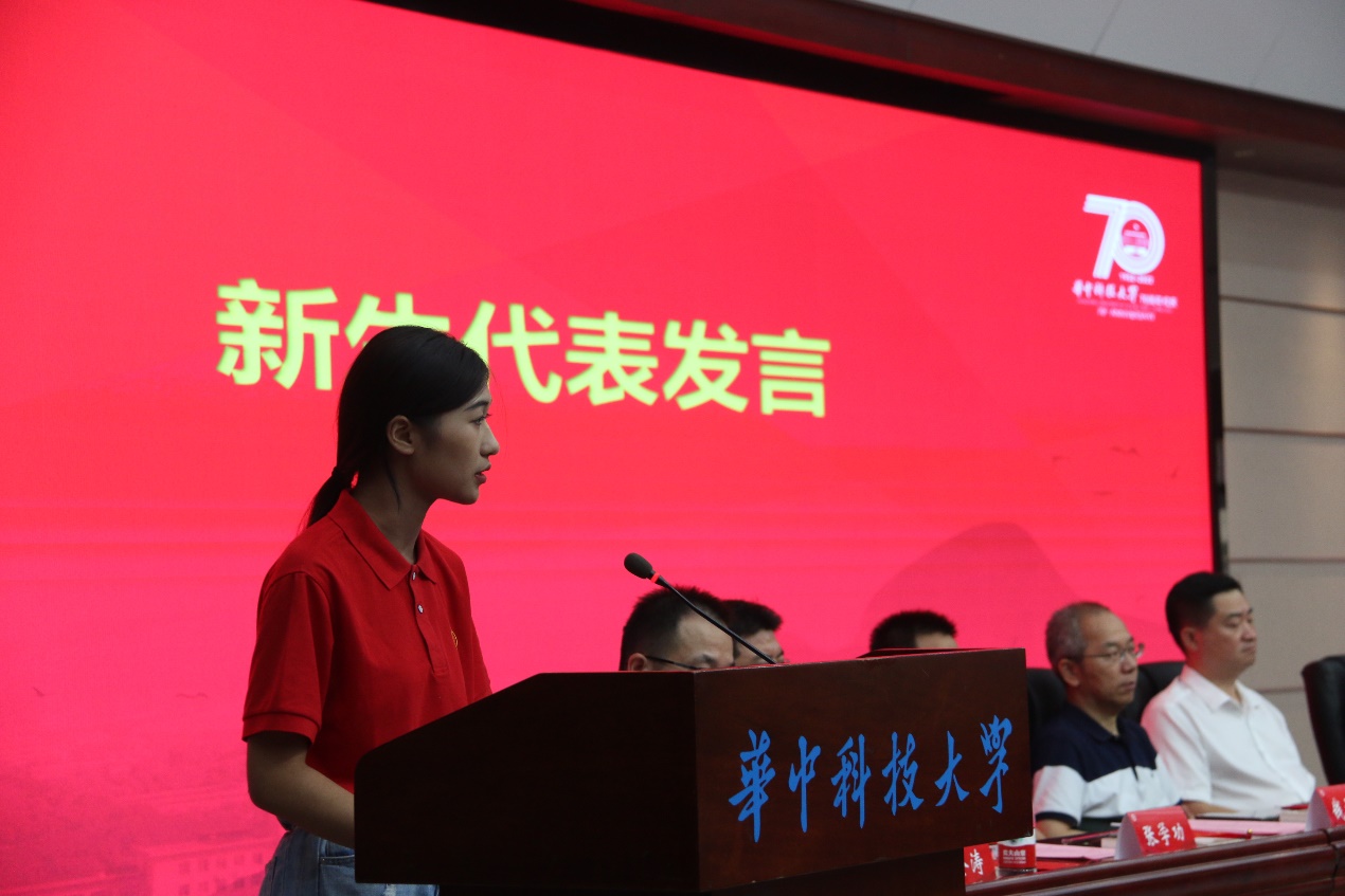 老生代表、公司第八届“胡吉伟班”团支书王柯雅,新生代表、3044永利集团经创2201班吴子宜分别发言。王柯雅号召新生传承富有理想、勤奋学习、乐于奉献的新时期“胡吉伟精神”,鼓励他们将“爱国情、强国志、报国行”牢记于心并自觉融入实现中华民族伟大复兴的伟大事业之中。吴子宜从新生角度展望老员工活,并结合自身经历与全体新生分享所见所感:回首高中,汲取力量,砥砺前行;凝聚榜样力量,传承明德厚学之传统;坚守初心,携青春年华与热忱共赴美好前程。最后,吴子宜带领全体新生宣誓,同学们举起右手,庄严宣誓,“立足中国,放眼世界,立志成才,报效祖国!”
