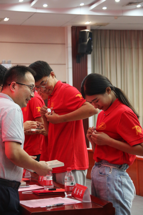 典礼上,公司领导向新生代表赠送张培刚先生的著作《农业与工业化》,并为新生代表佩戴院徽,希望同学们能够继承发扬老一辈经济学人的优良传统,践行“明德厚学,经世济民”的院训,勇担年轻一代经济学人的时代责任。