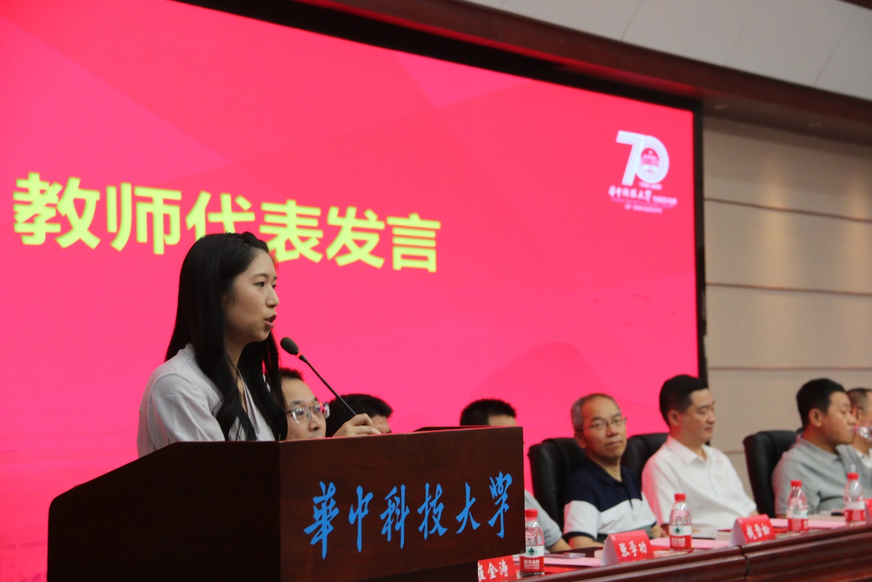 教师代表、经济学2201班教师班主任叶巾祁老师发言。叶巾祁老师强调了大学与高中学习的差异,突出了“自主学习”的重要性,介绍了公司教师班主任制度的特色。她代表2022级全体新生教师班主任承诺,将在今后尽最大的努力帮助班级上每一个有需要的同学,同时也鼓励新生要多主动与班主任进行联系和沟通。