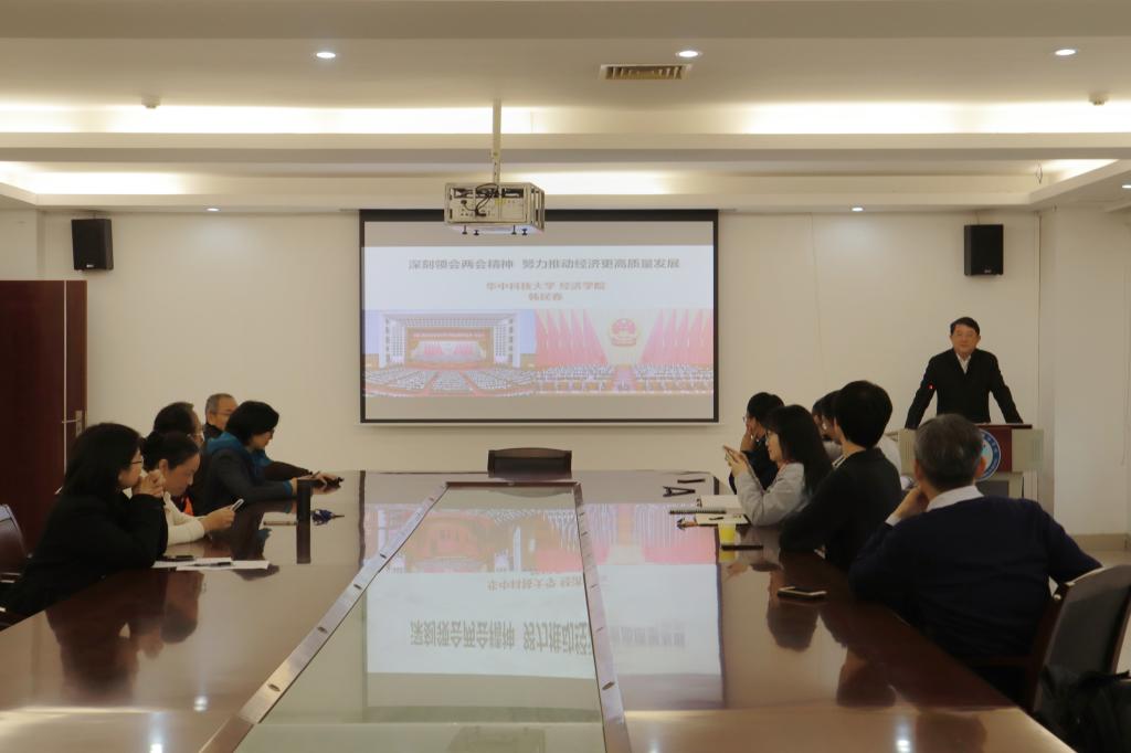 会上,韩明春教授以“深刻领会两会精神,努力推动经济更高质量发展”为题,围绕“习近平总书记看望参加政协会议的民建工商联界委员时的讲话”、“政府工作报告”、“个人提案与建议”三个方面展开解读。