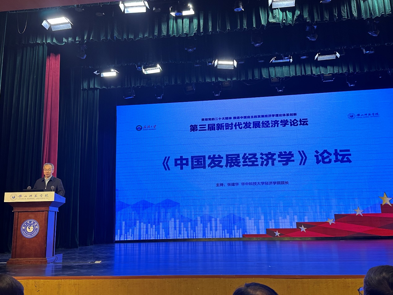 论坛开幕式之后,公司张建华教授主持的《中国发展经济学》分论坛于25日上午进行,国家首批中国经济学教材《中国发展经济学》三个编写团队负责人刘守英、郭熙保、任保平,以及中心联席主任叶初升分别做了主题报告。