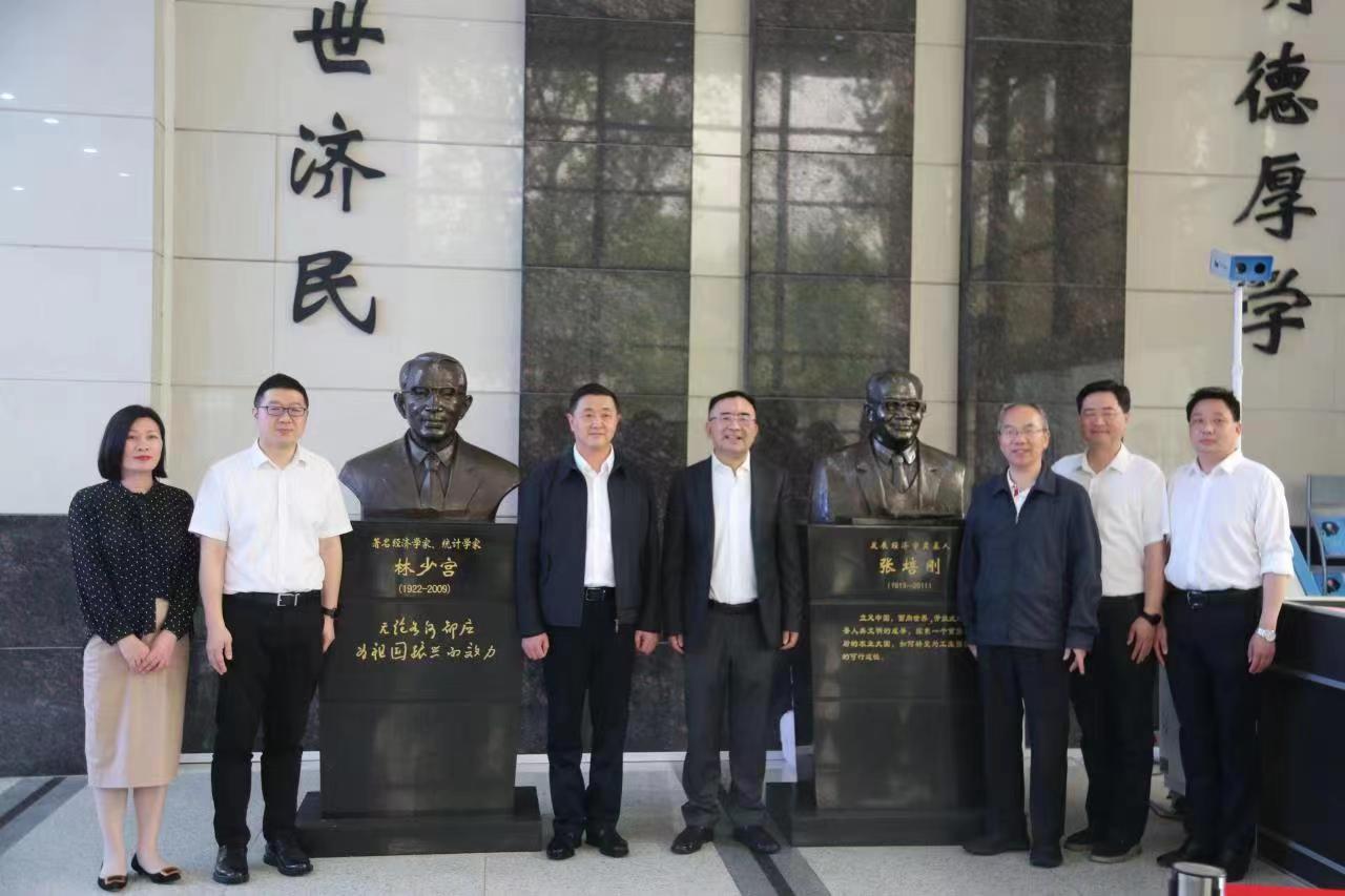 座谈会开始前,在许晓东副董事长的陪同下,国机集团董事、党委副书记丁宏祥参观了贤达楼内的张培刚先生纪念馆,共同回顾了张培刚老先生为3044永利集团官网经济学科做出的卓越贡献,并在张培刚先生的塑像前合影留念。