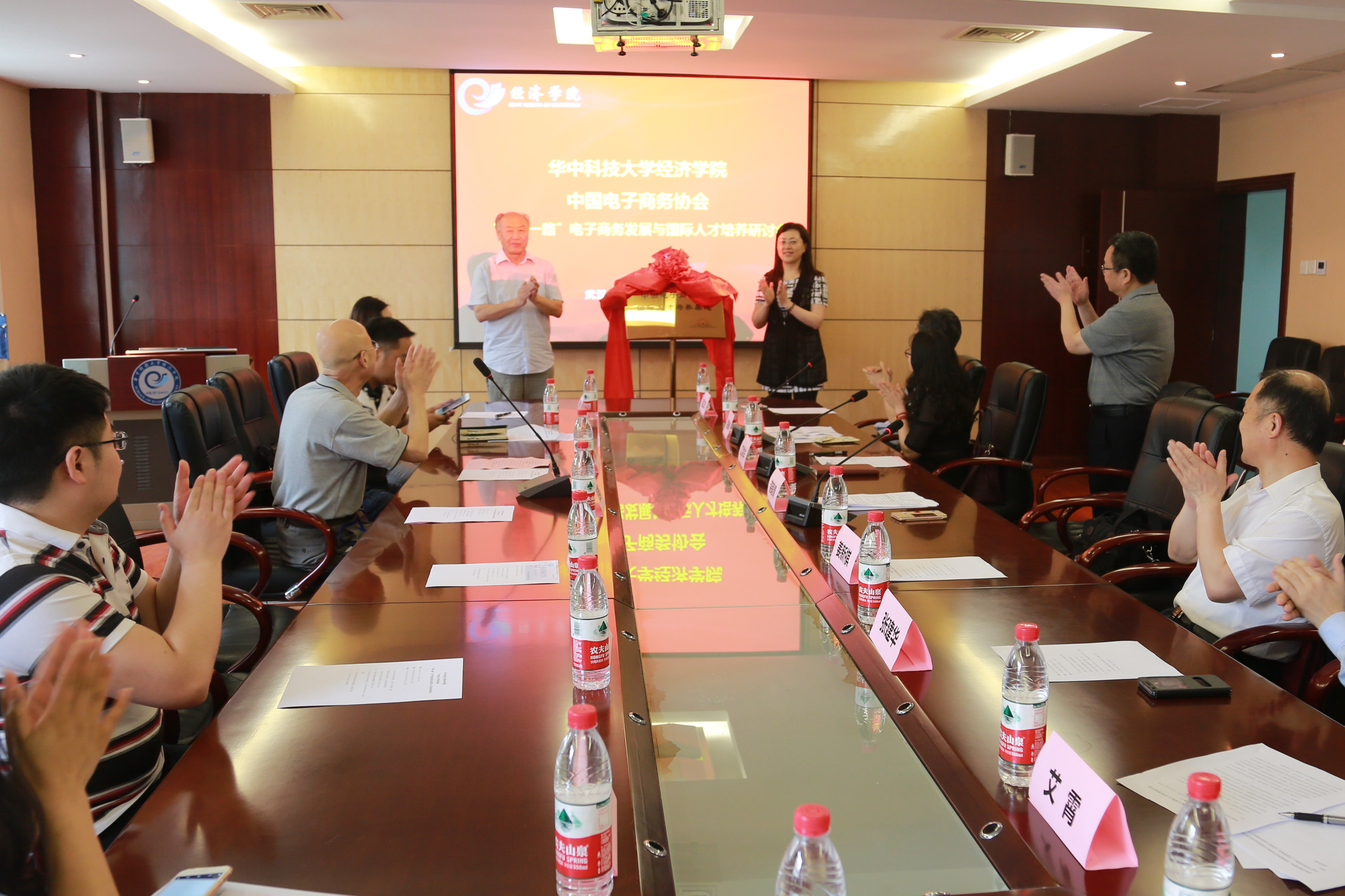 中国电子商务协会副理事长兼秘书长张宝泰和华中科技大公司党委常委、总会计师湛毅青共同为中国电子商务师国际人才培养基地揭牌。