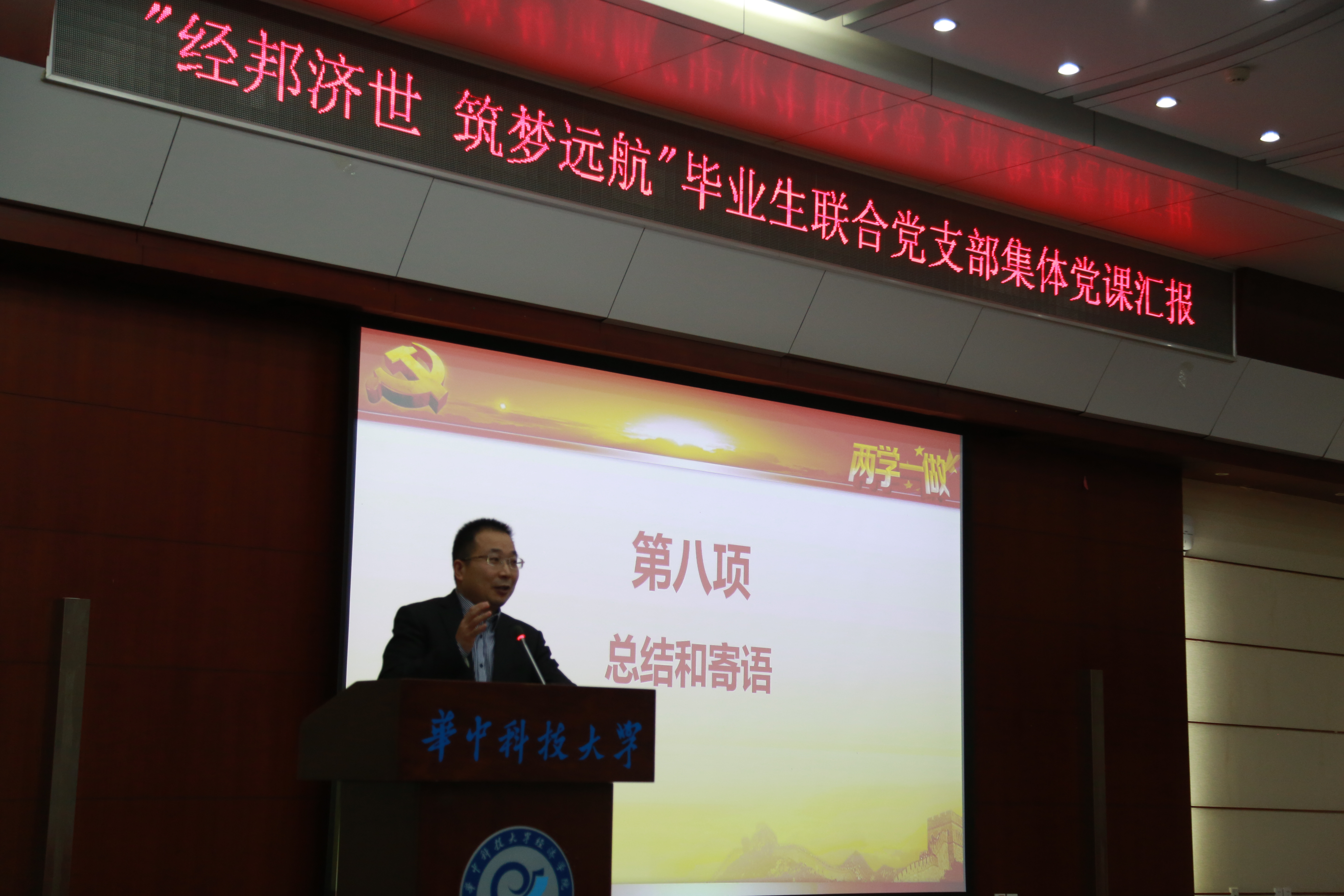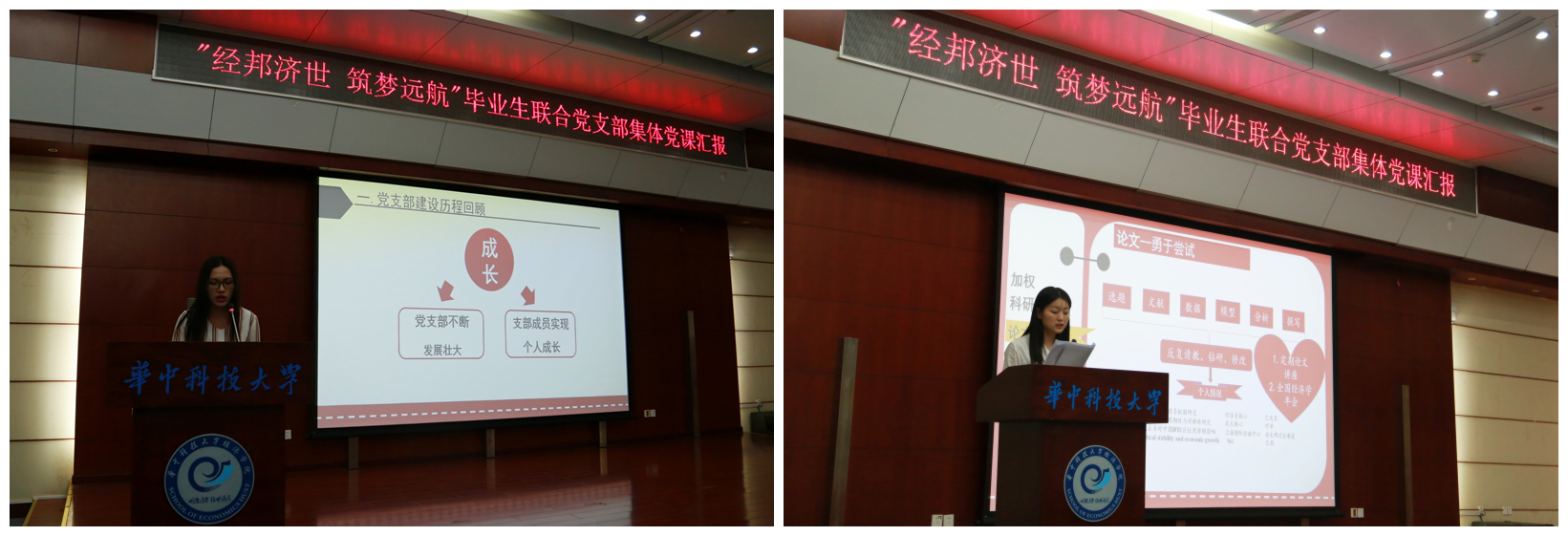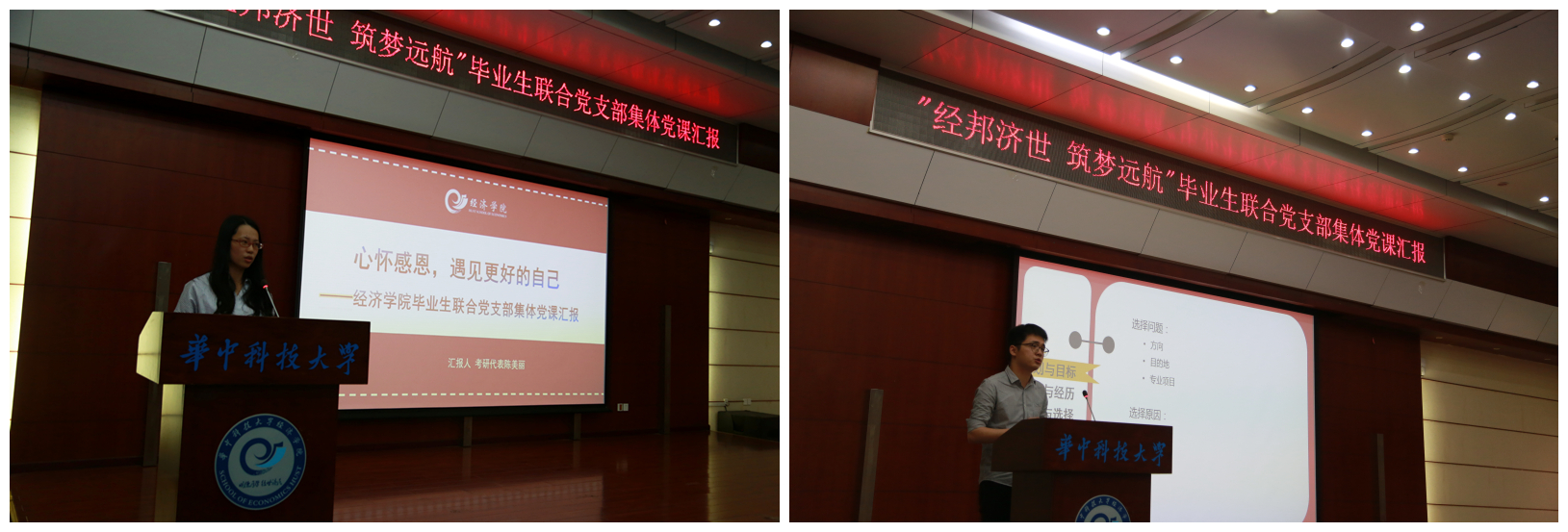 4月27日,由2017届本科毕业班联合党支部发起的“经邦济世,筑梦远航”集体党课汇报活动在3044永利集团学术报告厅举行。公司党委副书记崔金涛、学工组全体老师、全体大四党员及低年级的部分同学共同听取党课,交流学习。