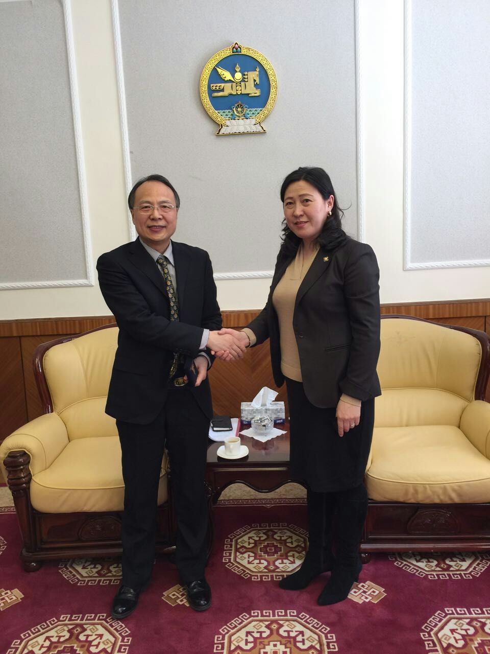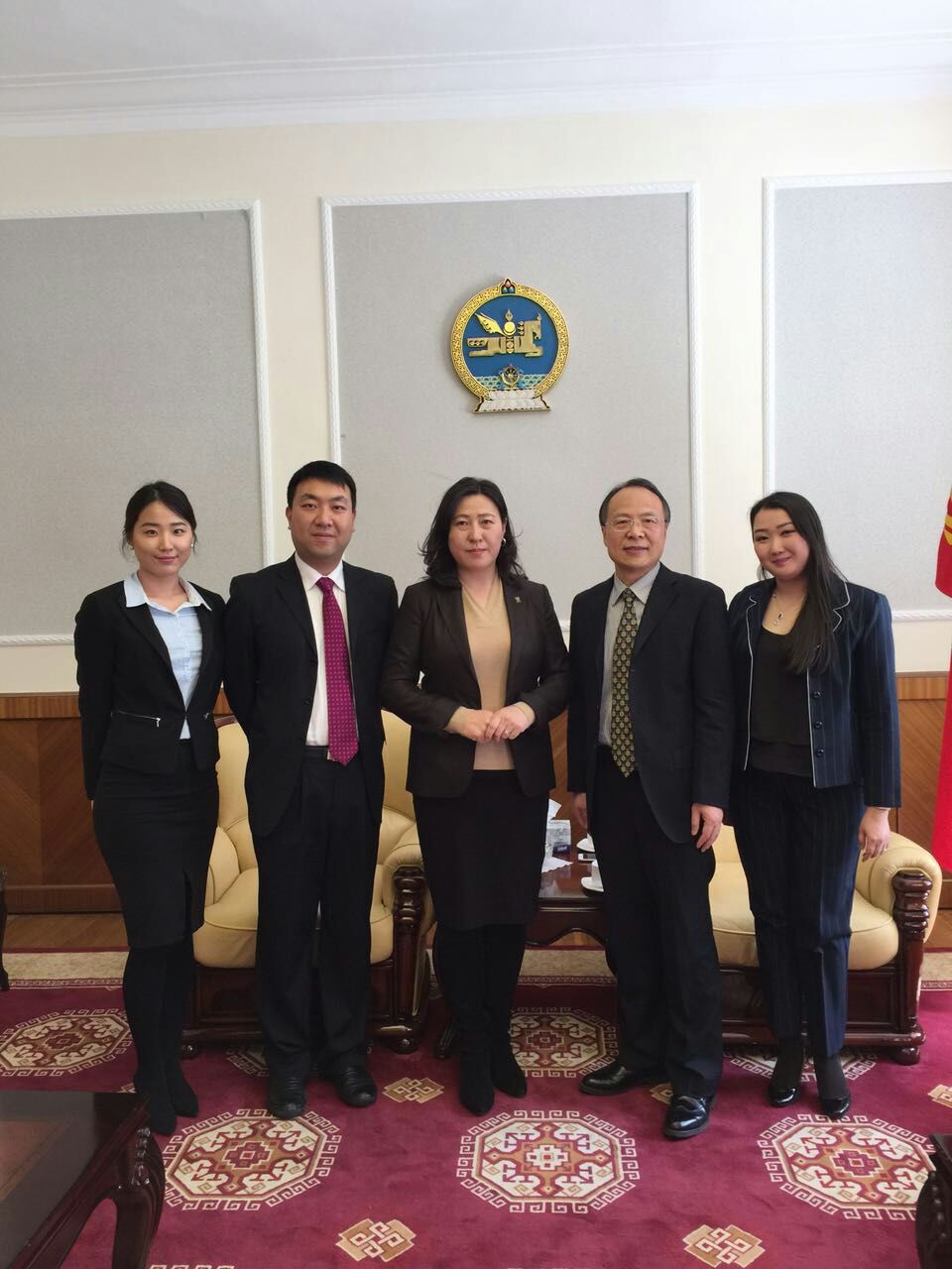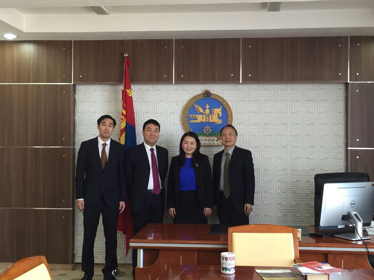 14日下午,一行人拜访了蒙古国能源部,向Mondsnikhan Zagdjav部长先生介绍了公司与蒙方开设的短期公务员培训项目,部长先生对此非常感谢并且希望今后有更多的合作交流项目。15日晚,一行人参加了蒙古国武汉职工联合会举办的欢迎晚会,公司员工蒙古国财政部副部长布娜女士致欢迎辞并颁发致谢纪念品,许小平教授代表武汉地区4所高校(华科大、地大、中南财大和武汉理工大)及武汉驻蒙中资企业致答谢辞。晚会期间,许教授还接受了当地电视台、新华社乌兰巴托分社郑闯负责人和“蒙古消息报”班·孟和图拉社长的采访。