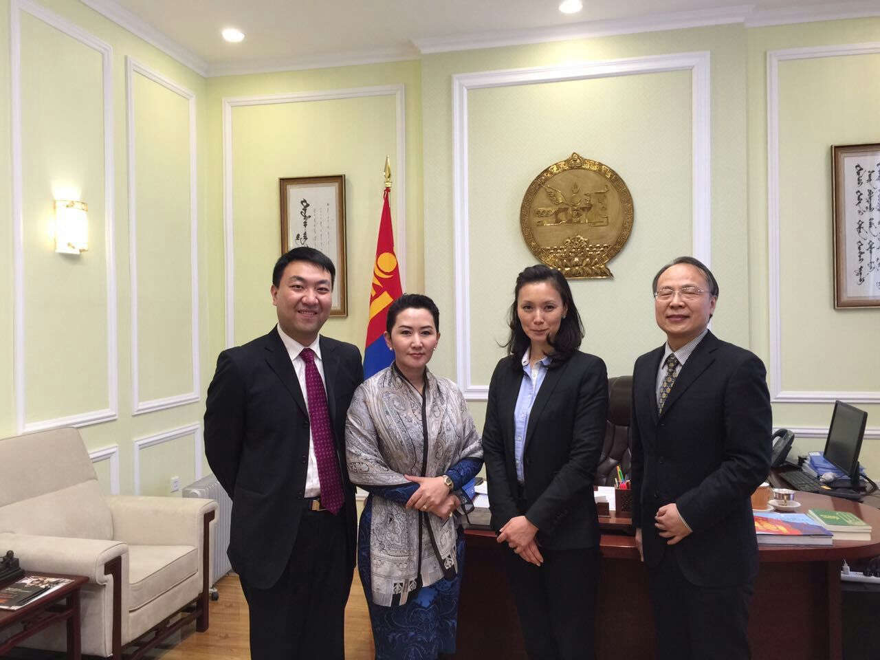 17日上午十点,一行人拜访了蒙古国财政部,布娜部长专门就中蒙人才培养问题跟我们进行了讨论。蒙方希望公司在培养蒙古职工方面要进一步加强针对性和实用性方面的培养,使他们毕业后能很快地胜任工作。我方表示今后一定要进一步完善职工培养方案,进一步扩大交流规模,有针对性地对财政部官员开展短期培训项目。会谈进行了一个多小时,取得了良好的效果。中午12时,一行人去蒙古国总统府拜访了蒙古国Undraa女议员(蒙古战略研究院前经理),议员就发挥蒙古战略研究院与中国蒙古研究中心的作用谈了自己的看法,她表示一定要发挥自身影响力促进中蒙合作交流。下午三点,一行人去蒙古国立大学进行暑期班招生宣传,预计有25名蒙古老员工来公司学习参观。下午四点,一行人拜访了蒙古国外交部副部长Batmunkh Battsetseg女士和外经贸合作司副部长Bulgan Dansran女士,双方就进一步开展合作交流进行了讨论。下午六点,一行人拜访了蒙古国战略研究院,Naranbayar经理和Zayakhuu Tserendulam副