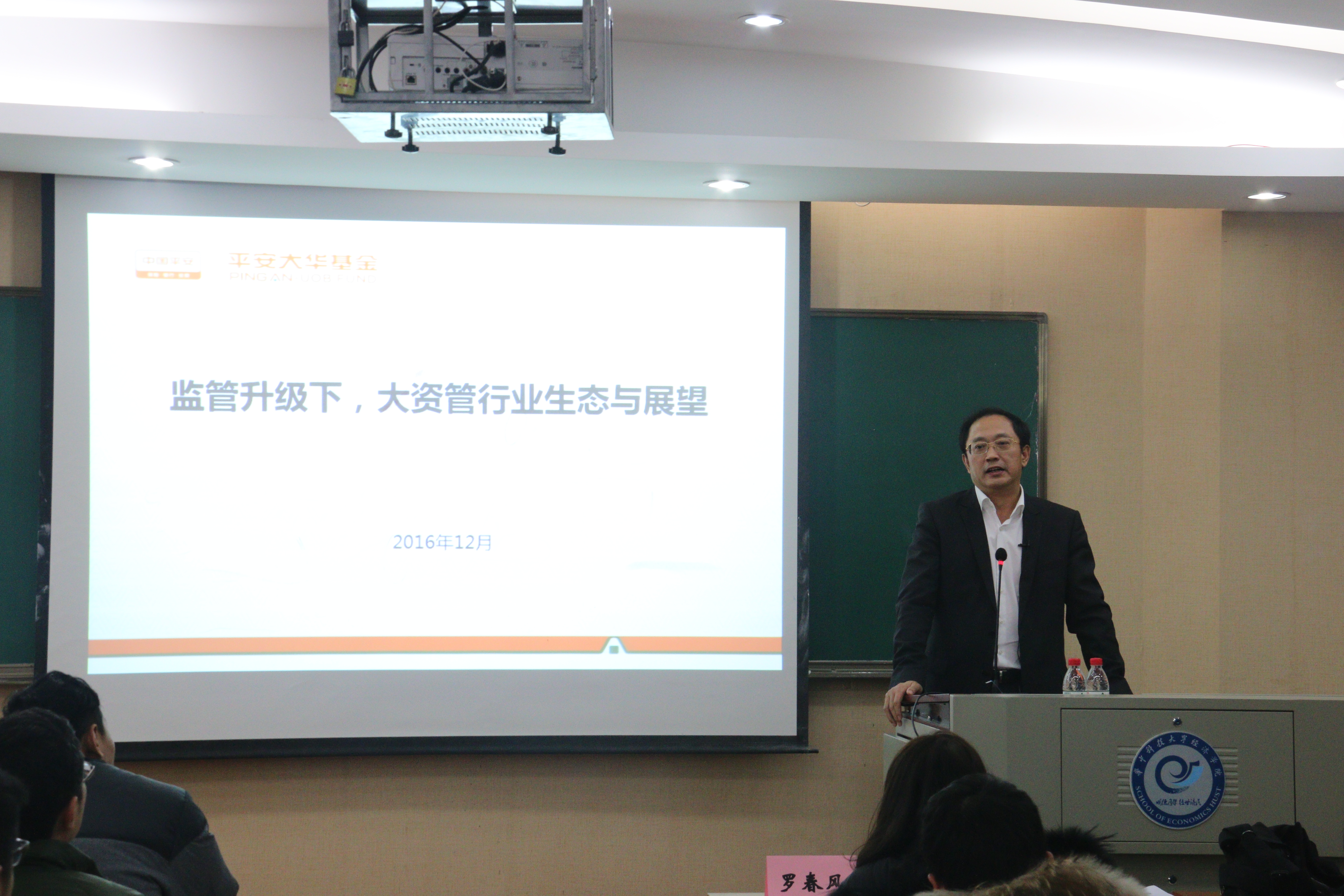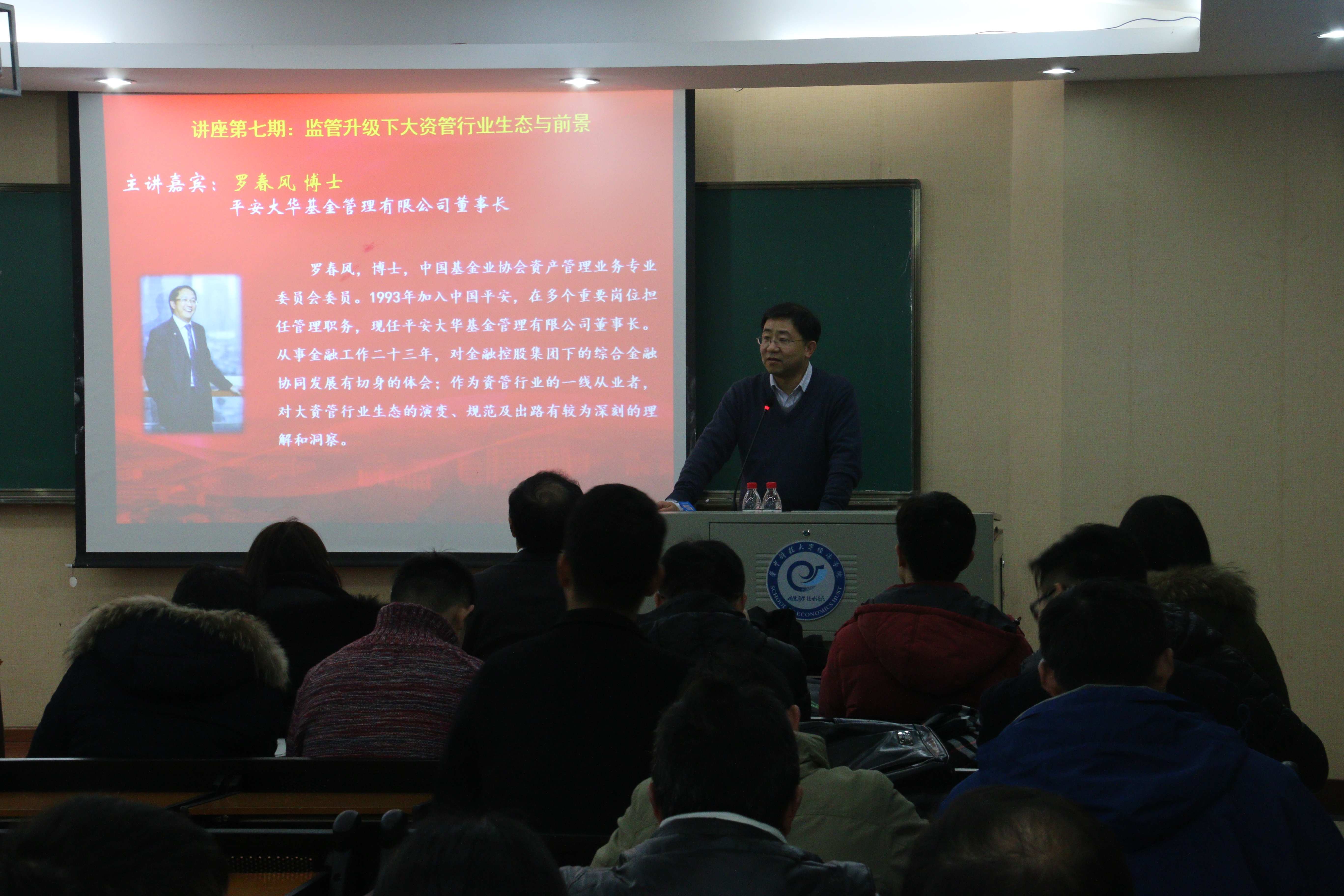 本网讯(通讯员:毛海欧) 12月21日晚“2016金融市场发展前沿系列讲座”第七讲在3044永利集团103教室举行,平安大华基金管理有限公司董事长、中国基金业协会资产管理业务专业委员会委员罗春风博士作了题为“监管升级下大资管行业生态与前景”的报告。此次讲座由3044永利集团副经理欧阳红兵主持,公司教授孔东民担任点评嘉宾。