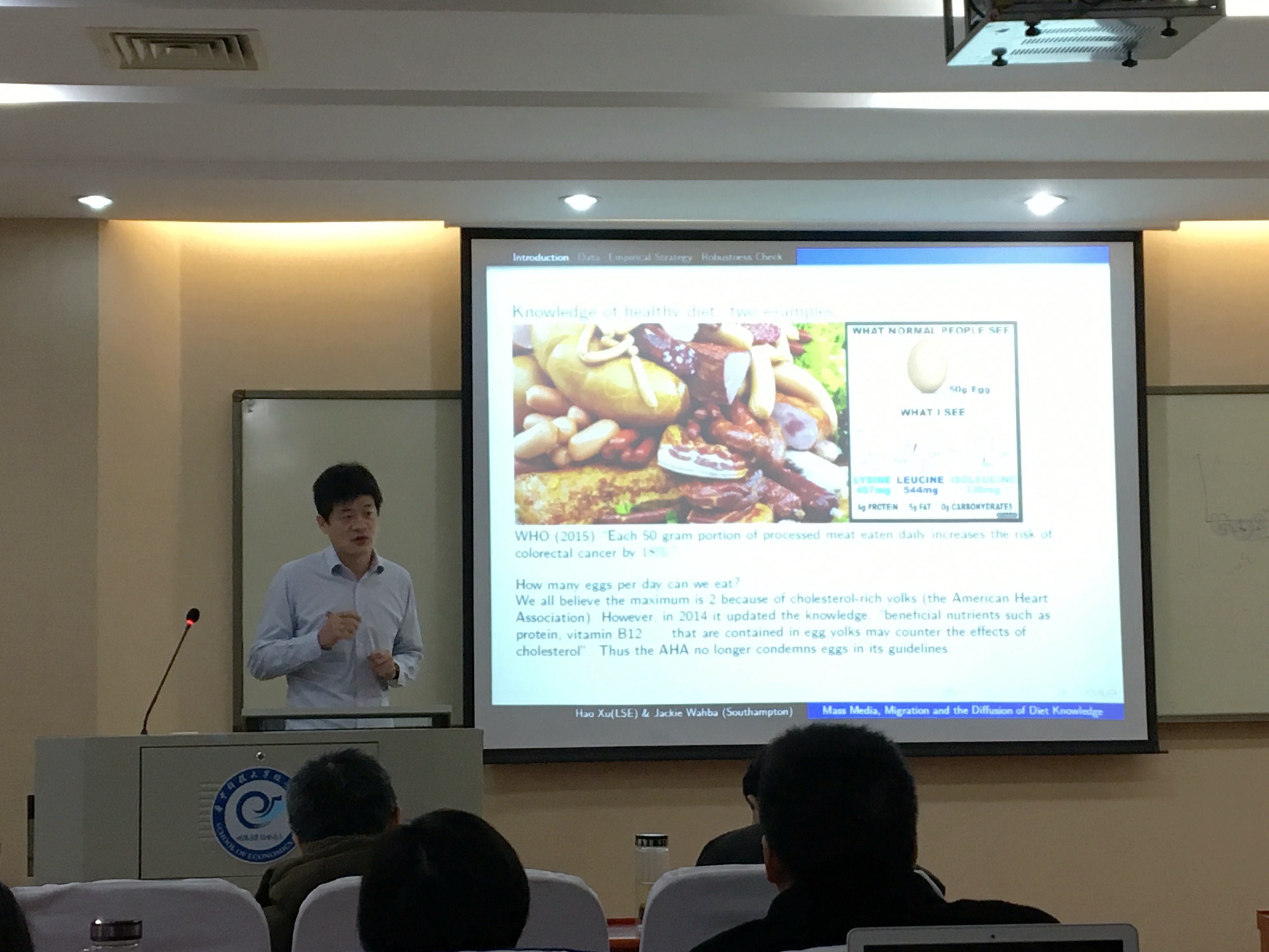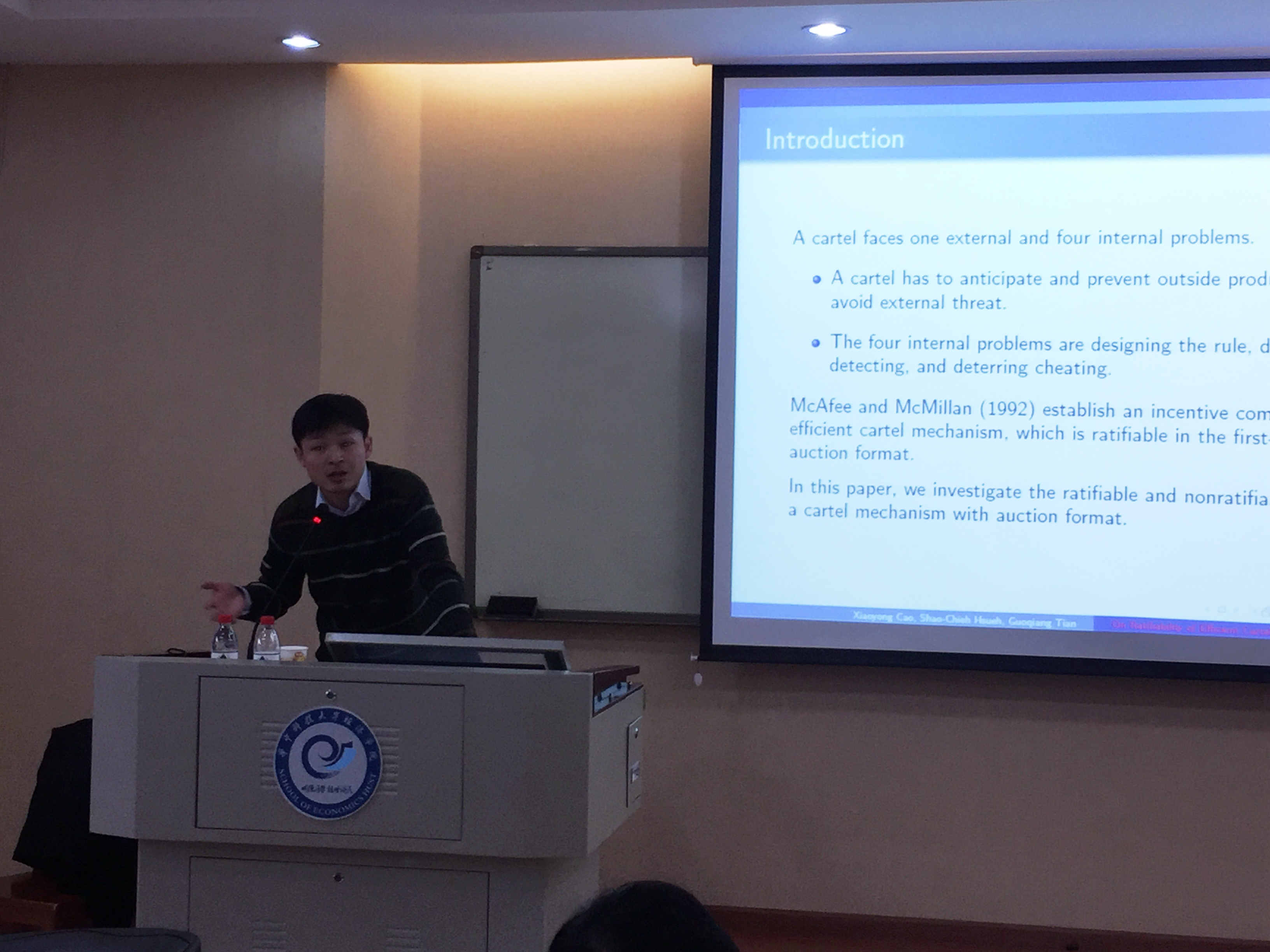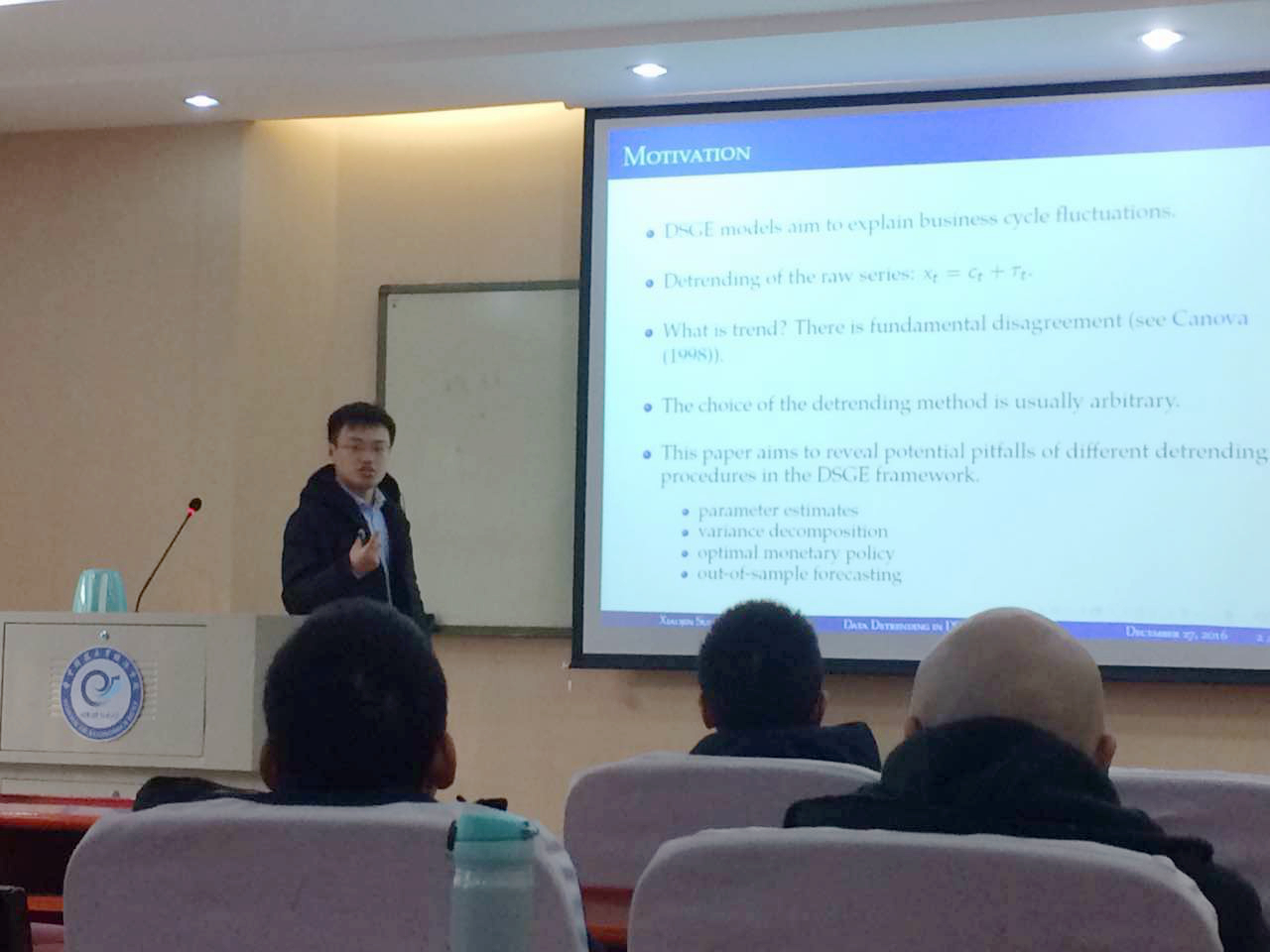 论坛由宋德勇教授和钱雪松副教授主持,青年教师易鸣、叶巾祁、彭斌担任讲座评论人。3位青年学者分别带来了理论与实证方面的精彩报告,他们介绍了各自的研究领域和研究成果。曹小勇博士汇报了有关第一定价拍卖中卡特尔运作机制的研究论文;许浩博士汇报了有关媒体、移民如何影响我国农村居民健康知识的研究论文;DSGE模型是当前宏观经济研究最为主流和有影响的模型之一,孙小津博士从去趋势角度出发,扩展了DSGE模型,为宏观经济分析提供依据。评论人分别就学者的讲座论文进行了详细深入的点评。与会学者与在场的师生进行了深入热烈的讨论,学术氛围浓烈。