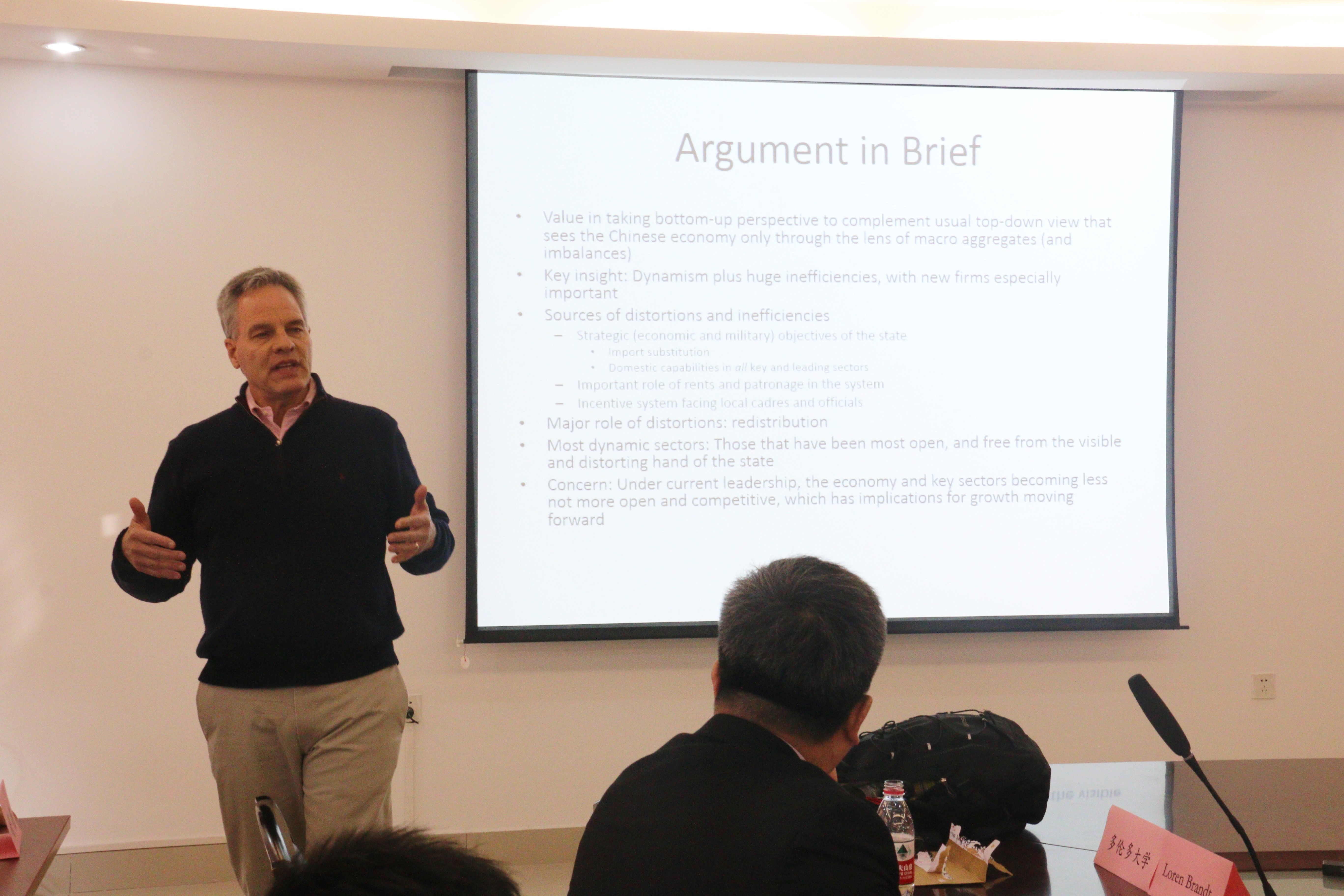 接下来进入主旨演讲环节,张俊森、黄季焜和田国强分别发表了学术演讲。主持人中国经济学会年会秘书长、北京大学国家发展研究院教授张晓波,介绍了三位主旨演讲人:田国强是第一位在美国获得终身教授职位的华人经济学者,黄季焜是首位中国的AAEA Fellow获得者,张俊森是为数不多的获选计量经济学会院士的亚洲学者。