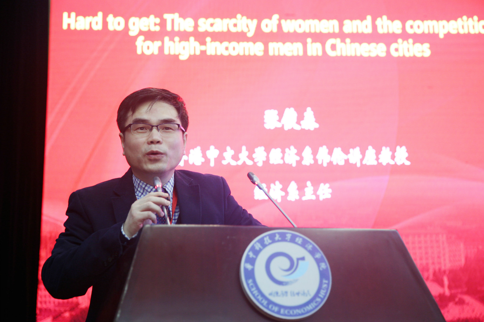 张俊森分享了他与合作者对中国婚姻市场的研究。在题为Hard to get: The scarcity of women and the competition for high-income men in Chinese cities的文章中,他们研究了性别比例不断上升的背景下,高收入女性在婚姻市场的竞争现状。为了阐释这一问题,他引入了“参照依赖偏好”概念,并用简单的博弈论框架对不同收入层次的女性在婚姻市场上的需求进行了分析,提出随男性价值增加,由于低收入漂亮女性参与竞争的激励增加,高收入女性在婚姻市场中不仅没有受益,反而受害。此外,他介绍了研究成果相关的实证证据。本文通过实验设计、CPFS和普查三方面的数据,利用计量回归证实了参照依赖偏好的显著性。