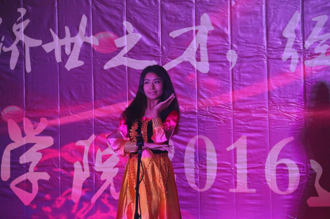 经院新生们也在本次晚会中充分展现出自己的才艺与创意。金融1601班的诗朗诵《再别康桥》巧用多种语言及各地乡音,构思独特,令人回味。金工1601班带来的小品《军训》则以幽默的语言、夸张的动作再现军训场景,将全场师生逗得笑声不断。国商1601班的舞台剧《博物馆奇妙夜》夹杂流行歌曲的串烧,赢得了观众的阵阵掌声。
