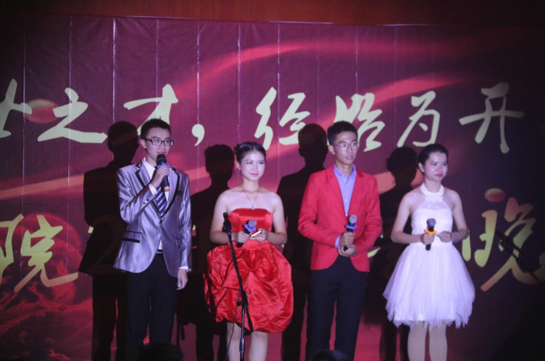 本网讯(通讯员分团委、员工会联合会谢佳馨、黄俊)9月29日晚7时,“济世之才,经始为开”2016年迎新晚会在经院学术报告厅拉开帷幕。公司党委副书记刘雅然博士,学工组各位老师以及各班班主任导师出席了本次晚会。