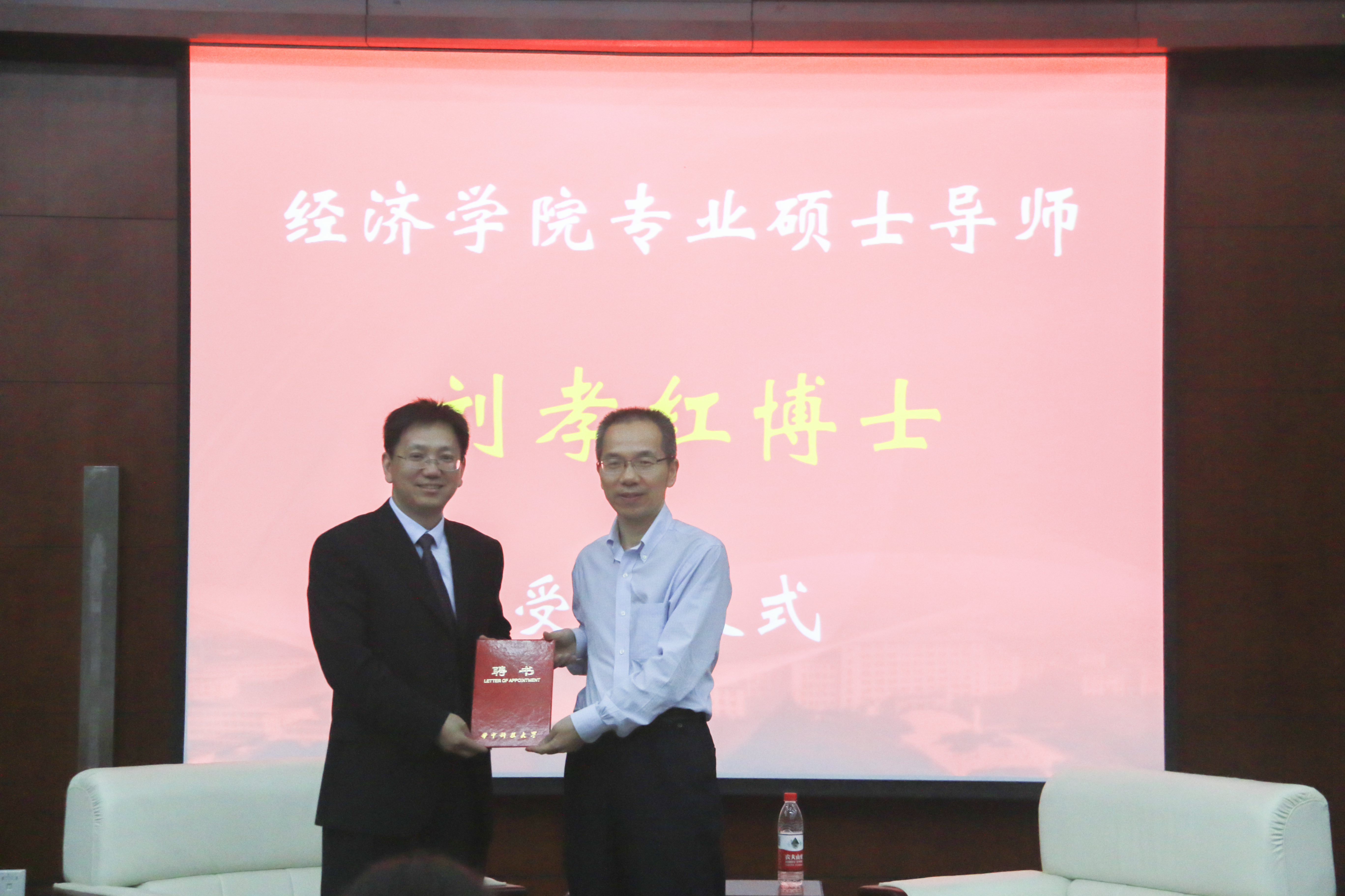 讲座后,刘孝红受聘为3044永利集团金融专业硕士导师,3044永利集团副经理(主持工作)张建华为其颁发聘书。