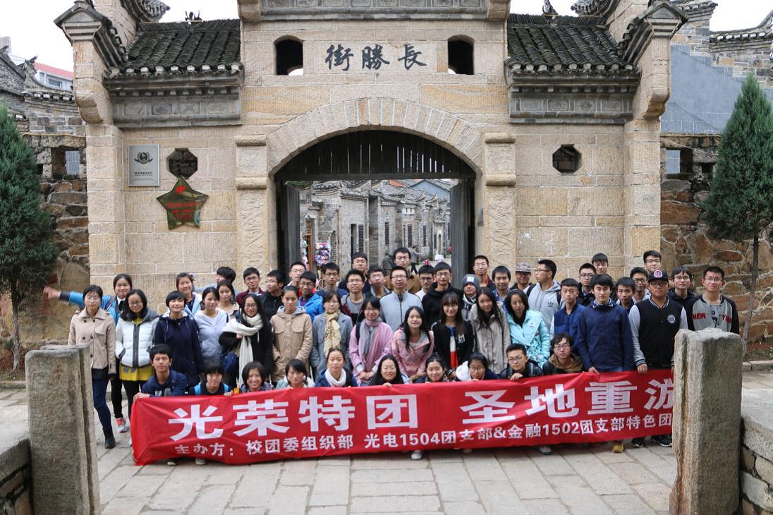 2015年适逢世界反法西斯战争胜利七十周年,金融1502和光电1504团支部以此为契机,开展了以“行红色之路,扬和平之帆”为主题的特色团日活动。在将军县红安,他们参观黄麻起义和鄂豫皖苏区纪念园,游览长胜街。中期展示中,他们自编自导自演一个抗战主题的舞台剧,吸引众多路人的围观,扩大特团影响力。寒假期间,他们回到各自家乡,拜访了当地抗战老兵,接触老兵们一个个生动的故事,他们的心灵受到了深深地触动。在特团答辩中,他们采用了形式新颖的“新闻联播”形式,向到场的评委嘉宾和同学们展示了他们的风采,同时呼吁大家铭记历史,不忘过去,得到了现场的共鸣。