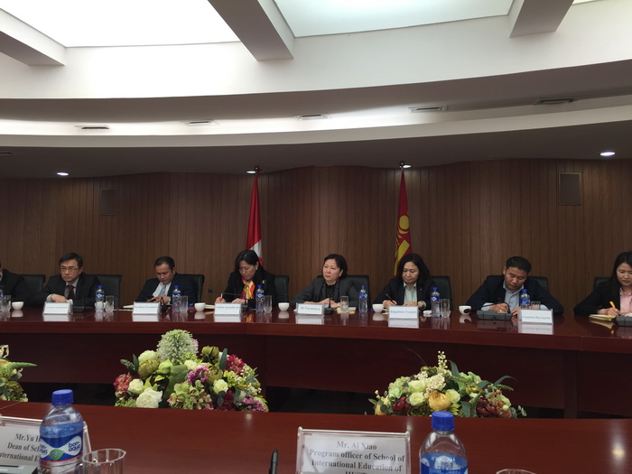 4月23日公司拜会蒙古国立大学,并与蒙古国立大学文理公司经理BADAMDORJ,蒙古中文系教授等一起会谈,双方就经济专业“2+2”双学位本科项目,中文实习项目、以及长、短期培训项目做了进一步的交流与探讨,蒙古国立大学一直是公司重要合作伙伴,双方从2010年开始合作,目前双方对合作项目非常满意。