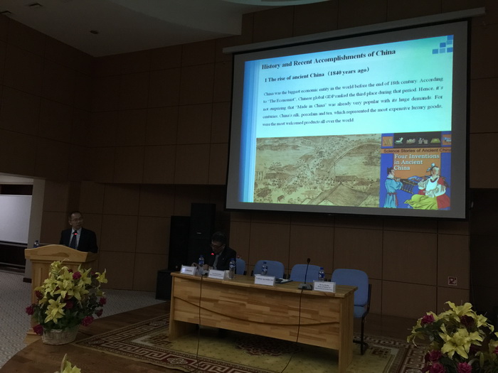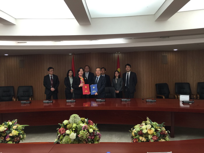 4月21日,公司代表团拜会蒙古人民党、蒙古战略研究院。蒙古人民党总书记MUNKHBAT JAMIYAN ,蒙古人民党秘书长、外事书记、公司员工布娜(BULGANTUYA KHURELBAATARBULGANTUYA KHURELBAATAR),蒙古战略研究院经理UNDRAA AGVAANLUVSAN等相关人员参加会谈,双方就人才培养、研讨交流、人员培训等方面达成一系列的合作协议,同时公司与蒙古战略研究院完成相关合作意向的签署。会后公司经理张建华教授为蒙古人民党成员作了“十三五期间中国经济转型”的专题报告。