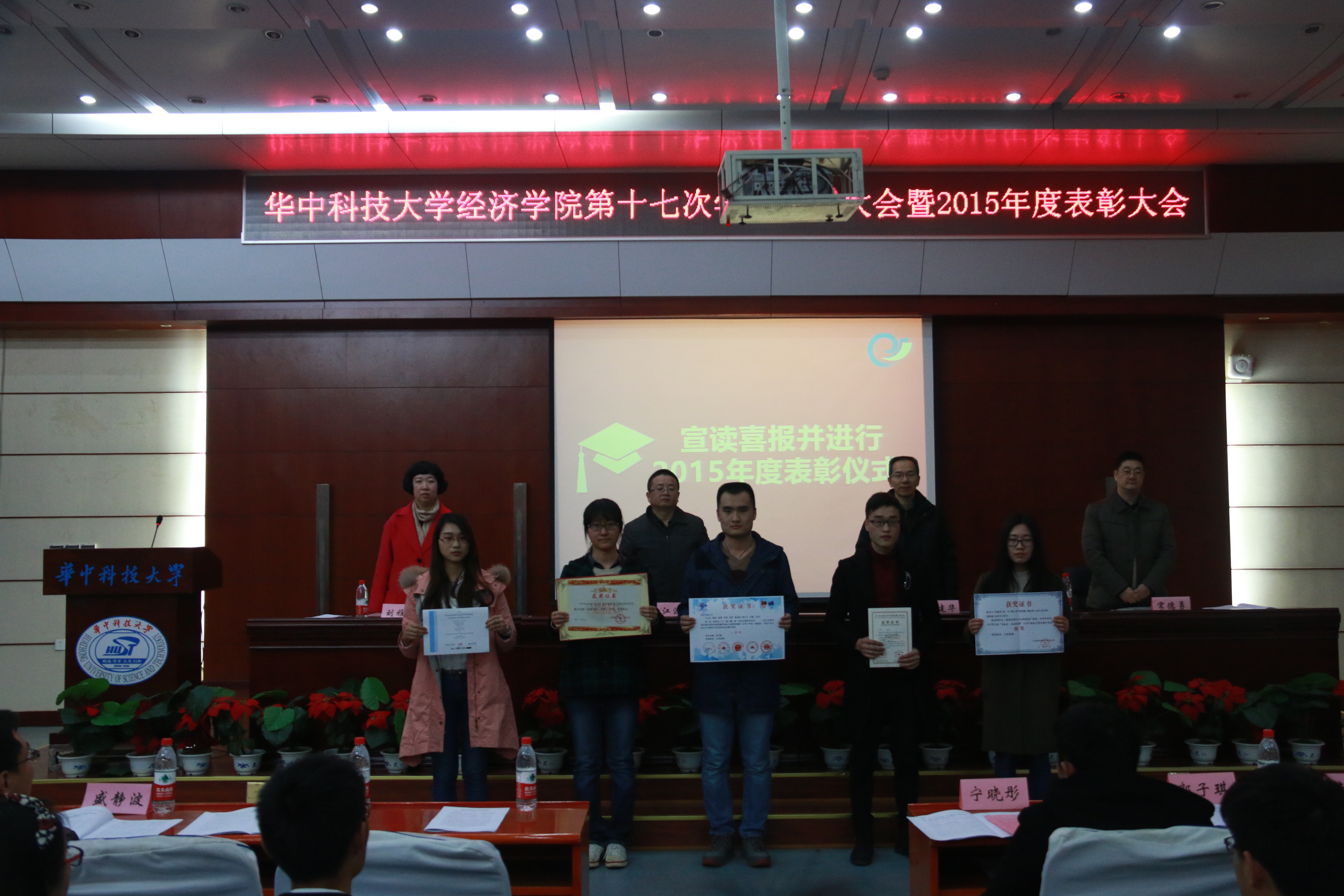 大会同时表彰了2015年度在科技创新、社会实践、学风建设、员工工作等方面表现优异的先进员工个人和集体。全院43人次在国际级、国家级科技创新和学科竞赛中获奖。张雅仁等3人获2015年全美老员工数学建模大赛特等奖提名奖,冯楚涵获一等奖,张宸瑜等3人获2015年全国老员工数学建模竞赛一等奖,牛琴等3人获二等奖,雷心怡获第六届全国老员工数学竞赛一等奖,段天宇获第十四届“挑战杯”中航工业全国老员工课外学术科技作品竞赛一等奖。230人次获省级、校级荣誉称号。潘婷获评“省级暑期社会实践先进个人”,郭子琪获评“校三好员工标兵”。35个集体获校级荣誉称号。胡吉伟团支部获评“校优秀团支部标兵”,经济学1401班等24个班级获评“校优良学风班”。