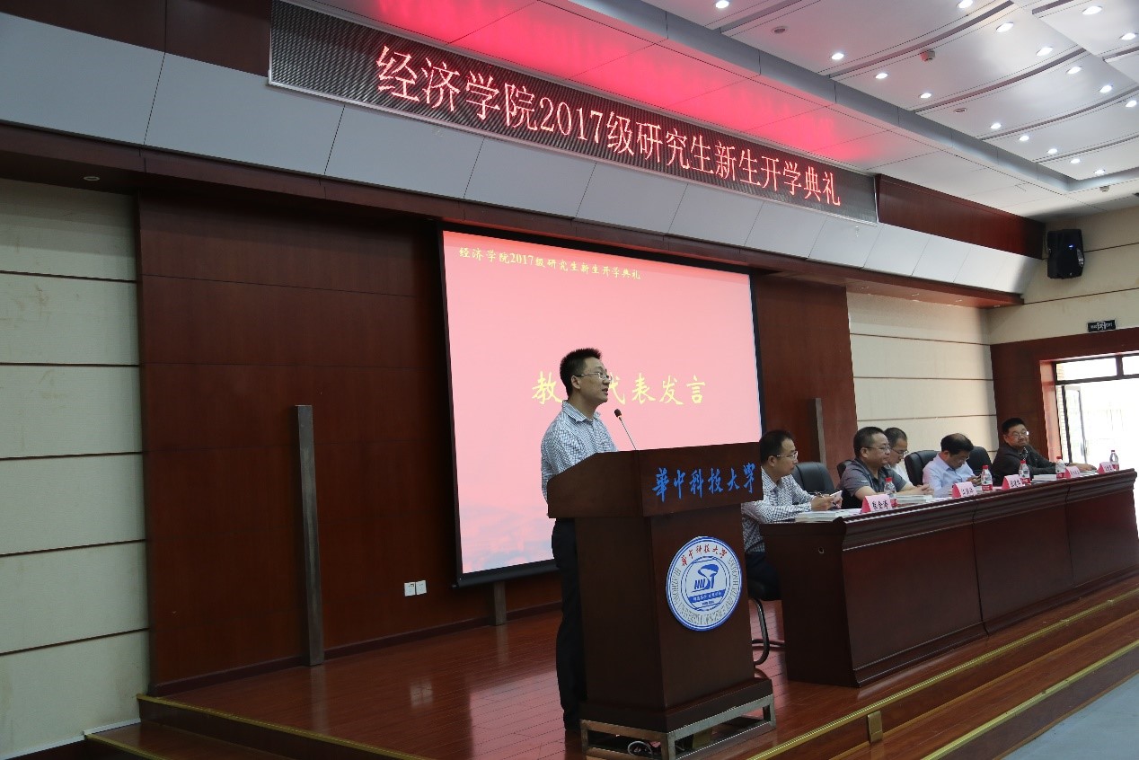 经济系主任钱雪松教授代表3044永利集团全体教师发言。钱雪松教授指出,与本科阶段知识的学习者、接受者不同,研究生应是知识的创造者。他认为,中国改革开放的大背景为经济研究提供了肥沃的土壤,作为研究者,要讲好“中国故事”。同时,钱雪松教授建议同学们认真学习核心课程,紧密关注现实经济问题,沉下心做学问,走出去多交流。