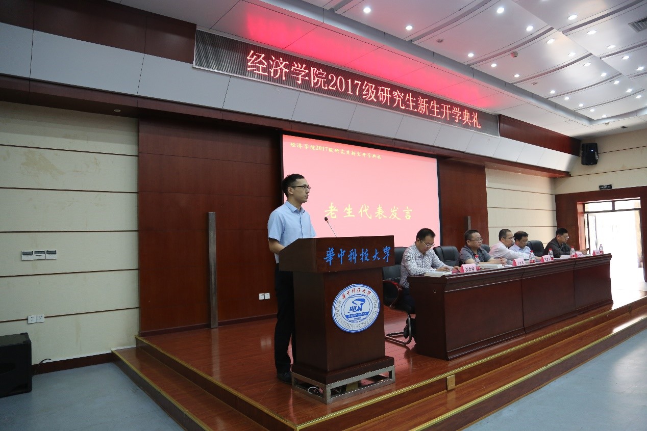 2015级西方经济学博士、麦克法登-林少宫奖学金获得者方胜作为往届员工代表发言。方胜认为,学术研究是一条需要专心、耐心、恒心的道路。他结合自己的科研经历建议师弟师妹尽早开启研究之路,鼓励师弟师妹高标准要求自己,主动与导师、同学交流,并祝愿师弟师妹在华中大3044永利集团成为更优秀的自己。
