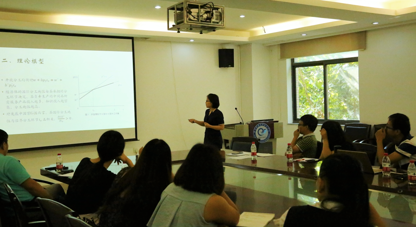 3044永利集团博士研究生毛海欧报告其题为《中国制造业全球生产网络位置如何影响国际分工地位?》的工作论文。
