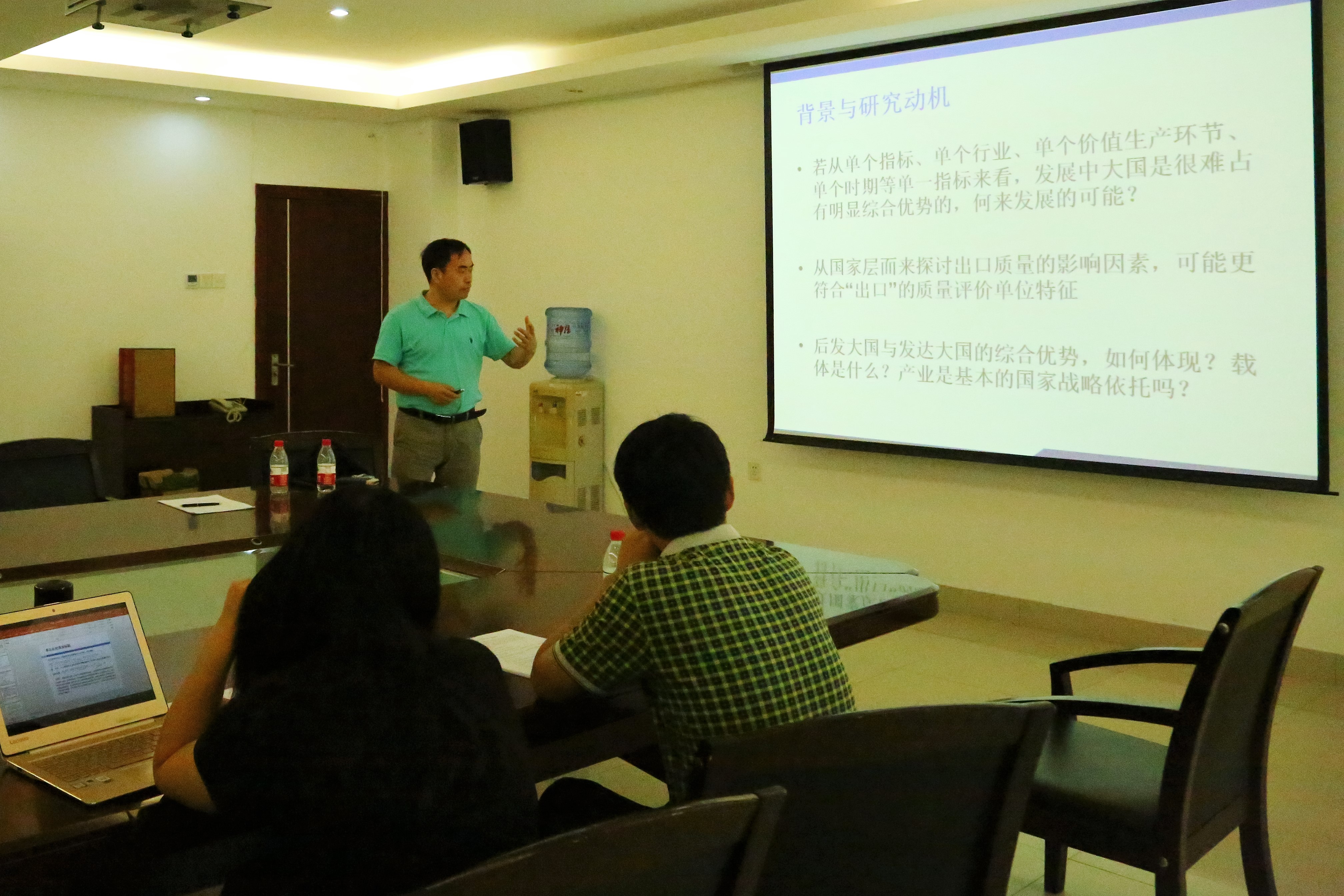 中南财经政法大学现代产业经济中心石军伟教授作题为《工业发展与出口质量——来自42个大国的经验证据》的报告。石军伟首先指出本文的研究动机,他表示,在中国对外贸易发展迅猛的大背景下,虽然我国对外贸易在数量上保持持续的增长,但却在全球价值链中长期处于技术含量较低的出口加工环节,因此对出口产品质量的研究显得尤为重要。