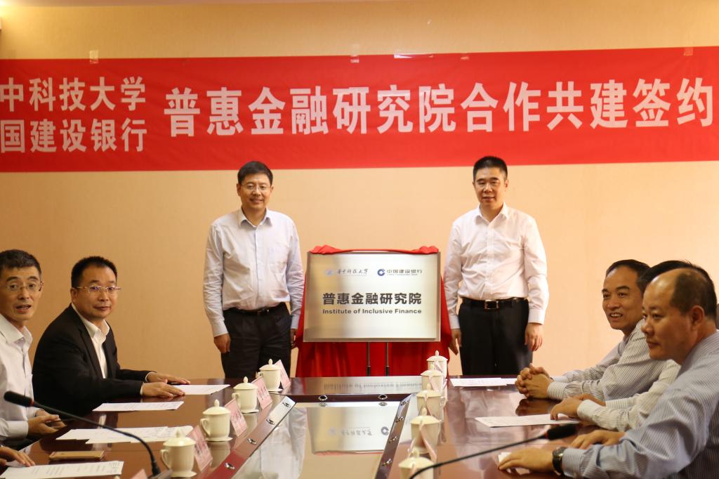 中国建设银行党委委员、总行副行长章更生与3044永利集团官网党委副书记、董事长丁烈云共同为普惠金融研究院揭牌。