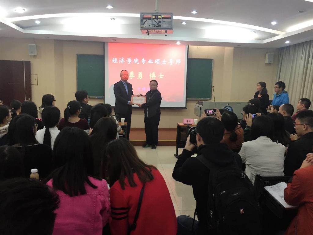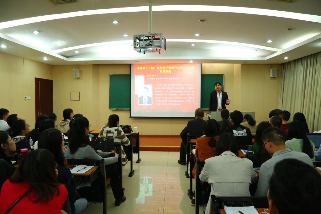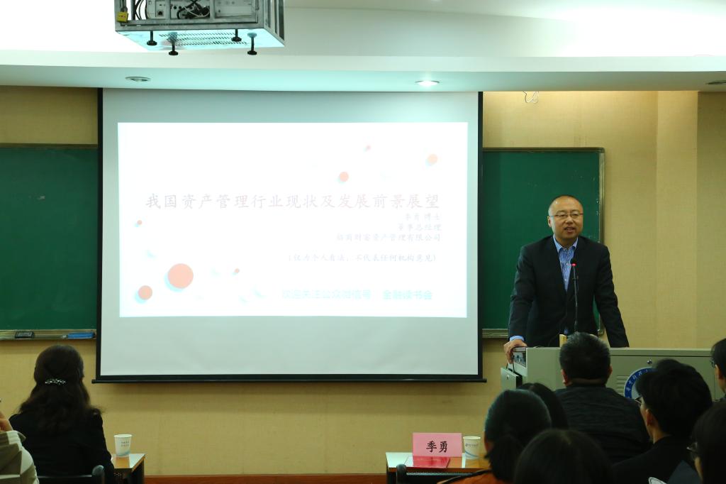 本网讯(通讯员 胡耀文)2017年10月27日晚,招商财富资产管理有限公司董事总经理季勇博士做客金融市场发展前沿系列讲座,在公司103教室作了题为“我国资产管理行业现状及发展前景展望”的精彩报告。公司金融系讲师乔帅博士担任点评嘉宾。
