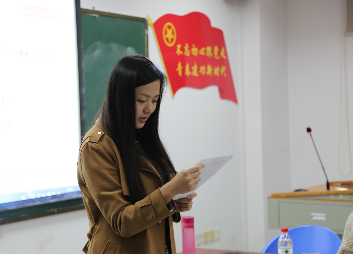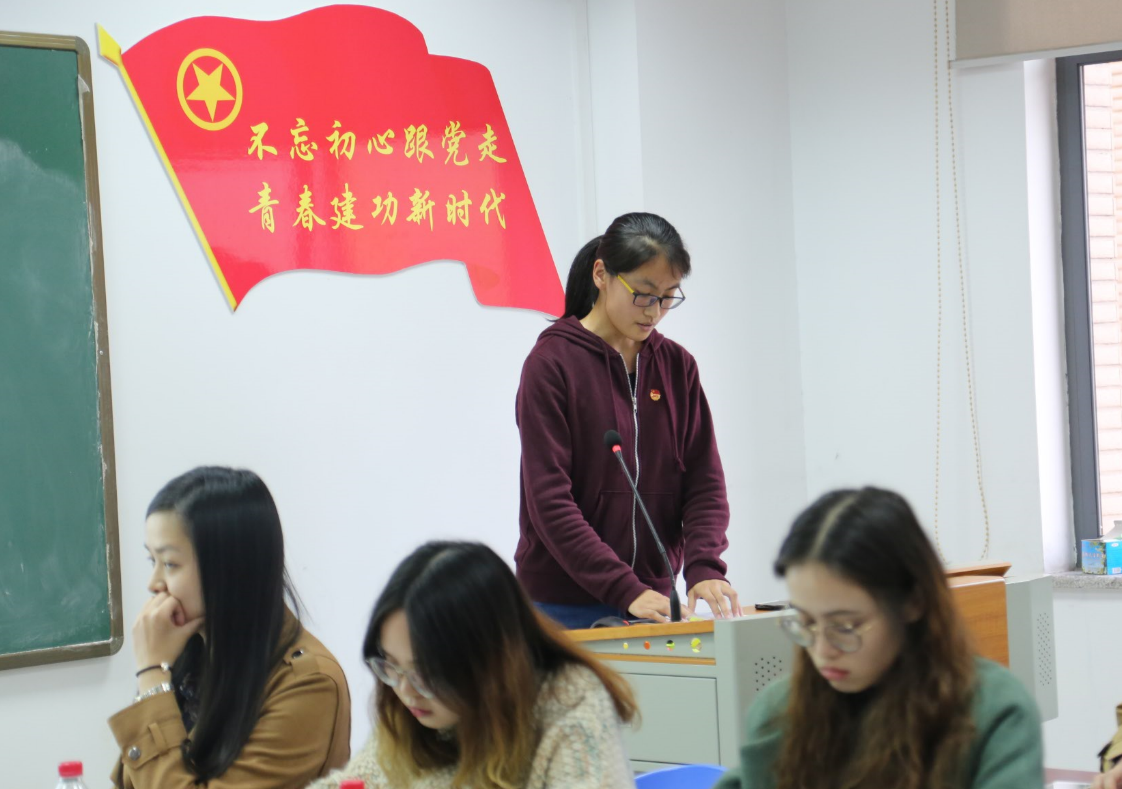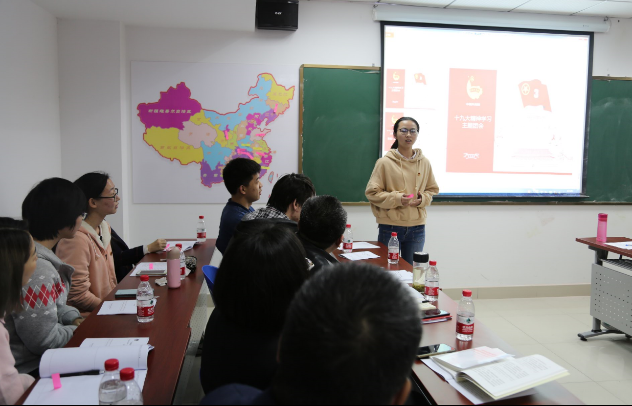 紧接着,在“牢记使命”环节,支部成员代表分享了学习十九大报告精神的感悟。王振鑫认为,新时代社会主要矛盾的转变意味着更加公平的明天。杜紫明结合重庆酉阳县调研的经历,分享了“旅游扶贫”的精准扶贫的成就,对担当新时代青年的责任充满信心。任可歆探讨了“不忘初心”的“初心”是指什么,号召大家把个人的理想和国家的发展联系起来,努力做出成绩。伍嘉慧以“最牛的背景是今天的中国”切入,结合胡吉伟精神谈当代青年的奉献与责任,指出老员工应提高自身修养与能力,打好硬件基础,随时准备为社会贡献自己的力量,无愧于时代的号召。