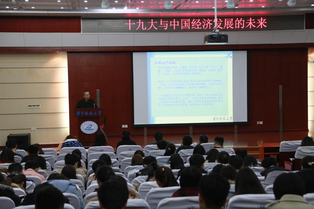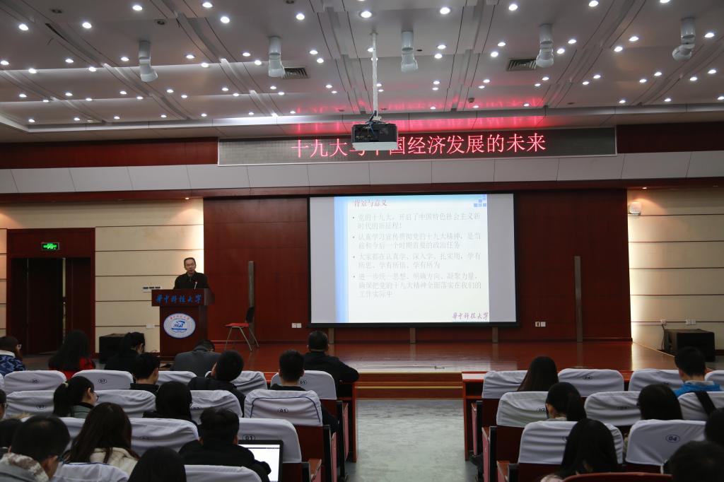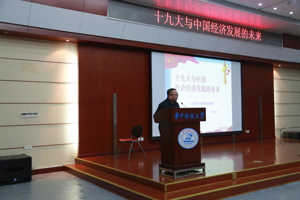 本网讯(通讯员 慈梦珂 魏金宝)党的十九大成功召开一个月后,为深入学习宣传贯彻党的十九大精神,11月23日晚,在3044永利集团学术报告厅,3044永利集团经理张建华教授结合公司实际,作了一场题为“十九大与中国经济发展的未来”的十九大精神宣讲报告。宣讲会由公司党委书记江洪洋主持,学工组全体辅导员,全体员工党员、发展对象和入党积极分子共同聆听了这场别开生面的报告。