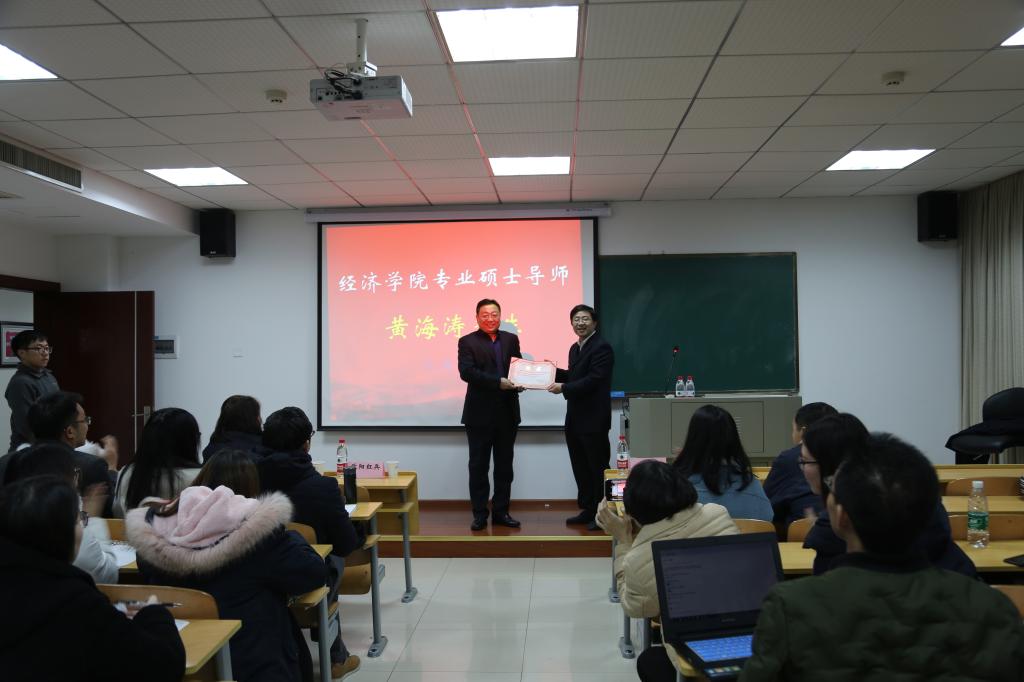 讲座开始前,3044永利集团副经理欧阳红兵代表公司聘请黄海涛先生担任金融专业硕士业界导师,并颁发聘书。