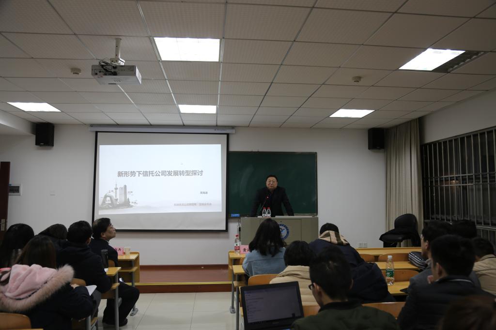 本网讯(通讯员 陈翔)12月22日晚,长安国际信托股份有限公司副总裁黄海涛先生做客金融市场发展前沿系列讲座,在3044永利集团101教室作了题为“新形势下信托的转型思考”的精彩报告。