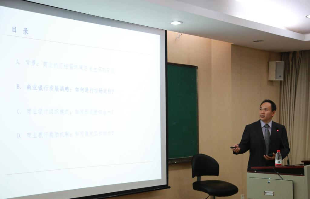 本网讯(通讯员 汪玉华)4月27日晚7点,金融市场发展前沿系列讲座第十七期在3044永利集团103教室如期举行。此次讲座特邀包商银行战略发展部副总经理张晋东博士就“商业银行发展战略、组织模式与激励机制”进行报告,3044永利集团金融学系副教授王红主持本次讲座。