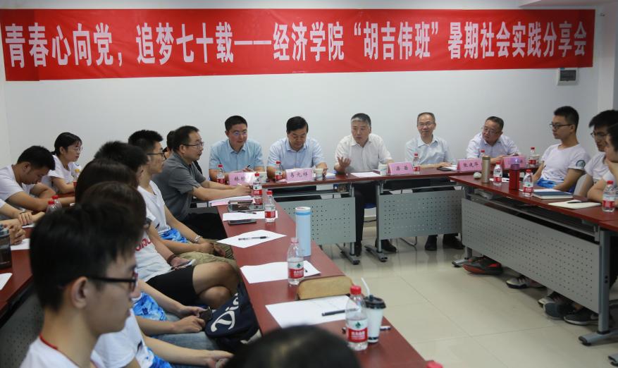 团支部书记黄晶从调研主题、调研形式、调研意义讲解了本次“胡吉伟班”暑期社会实践的整体概况。她提出在公司统一组织下,班级以“回顾筑梦七十载,青春建功新时代”为大主题,班级同学结合经济学专业特色积极策划、组织开展暑期社会实践活动,调研主题覆盖农业、金融、养老等多个领域,采取了下乡(入户)访谈、发放问卷调查、实地参观和专题座谈会等调研形式,深入湖北、河南、四川、贵州等省市地区开展调查研究。