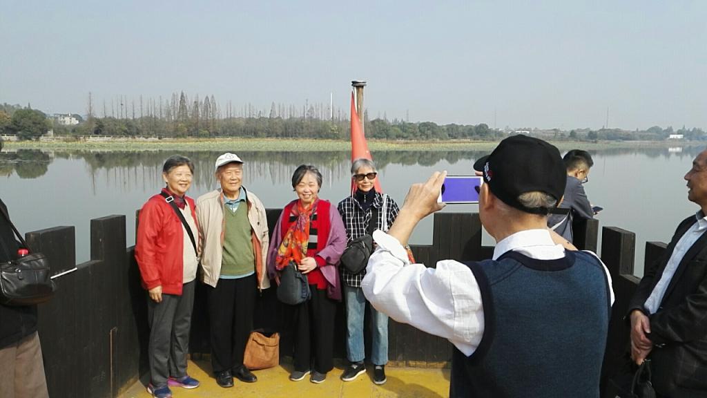上午八点半,老同志们乘车抵达张公山寨。他们一路上笑逐颜开,拉家常、叙旧情、拍照片,喜悦之情溢于言表。大家饶有兴致的参观了三国东吴文化遗址、吴国水军操练场、吴主大殿、古戏台、门楼、古牌楼、土地庙、古渡口等文化景点。他们既欣赏了自然、建筑、文物的艺术美,也体会到古老沧桑的历史印记。