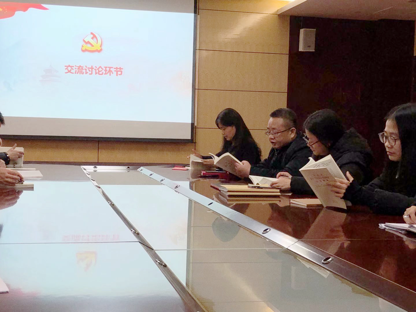第一部分读原著环节,党员轮流朗读,大家在阅读原著的环节更深刻地领会了我们在前进的道路上,一定要加强全党的理论武装,按照建设学习型政党的要求深入学习掌握中国特色社会主义理论体系,牢固树立辩证唯物主义和历史唯物注意世界观和方法论。