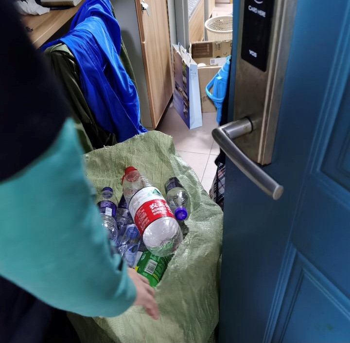 提前发布的的招募令获得了大家的热情支持,同学们纷纷加入本次爱心活动,并对活动充满期待。晚上9点整,3位负责人和16名志愿者在宿舍楼下集合完毕。虽然晚上气温骤降,但志愿者们满怀热情地询问活动安排。在负责人讲解完注意事项和礼貌用词后,向宿管阿姨申请同意并登记后,志愿者们顺利开启了爱心活动的旅程。当志愿者们依次有序地敲开宿舍门,向大家说明来意及活动的意义后,宿舍的同学们主动拿出饮料空瓶和废弃的书本交给了志愿者,用自己的行动温暖着冒着寒冷进行义工活动的志愿者们,更是献出了一片爱心。虽然中途在有些宿舍没有收集到回收物,但这丝毫不减志愿者们的服务热情,义工活动井然有序的圆满结束。