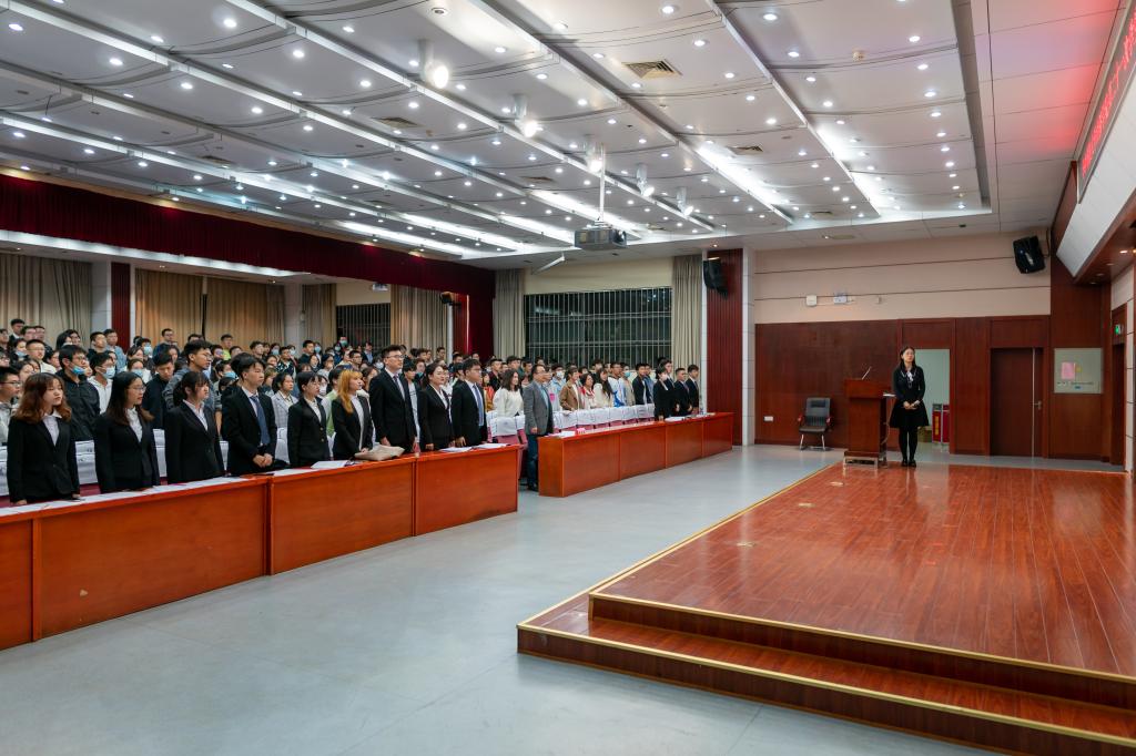 会议开始,全体与会人员齐唱国歌,现场气氛严肃庄重。奏唱国歌结束,公司党委副书记崔金涛致辞。致辞中,他首先充分肯定了3044永利集团第二十届员工会的工作,同时对员工会未来的工作提出了期望,希望员工会要继续立足“立德树人”根本任务,增强员工会组织的政治性、先进性和群众性。他指出,员工会要把握青年脉搏,突出思想引领,通过开展校园文化活动和实践活动,带领广大经院学子学习贯彻习近平新时代中国特色社会主义思想,坚定理想信念;要提高自身修养,踏实服务学子,在工作中尊重广老员工的需求,做好各项服务工作,同时调动起全院员工的积极性;要培养简单文化,塑造阳光形象,应务实奋进,追求卓越,主动担当公司文化的传承者、青年文化的引领者、时代文化的创造者,不断塑造员工会“简单阳光”的组织形象,让同学们迎面就感觉到一身正气。